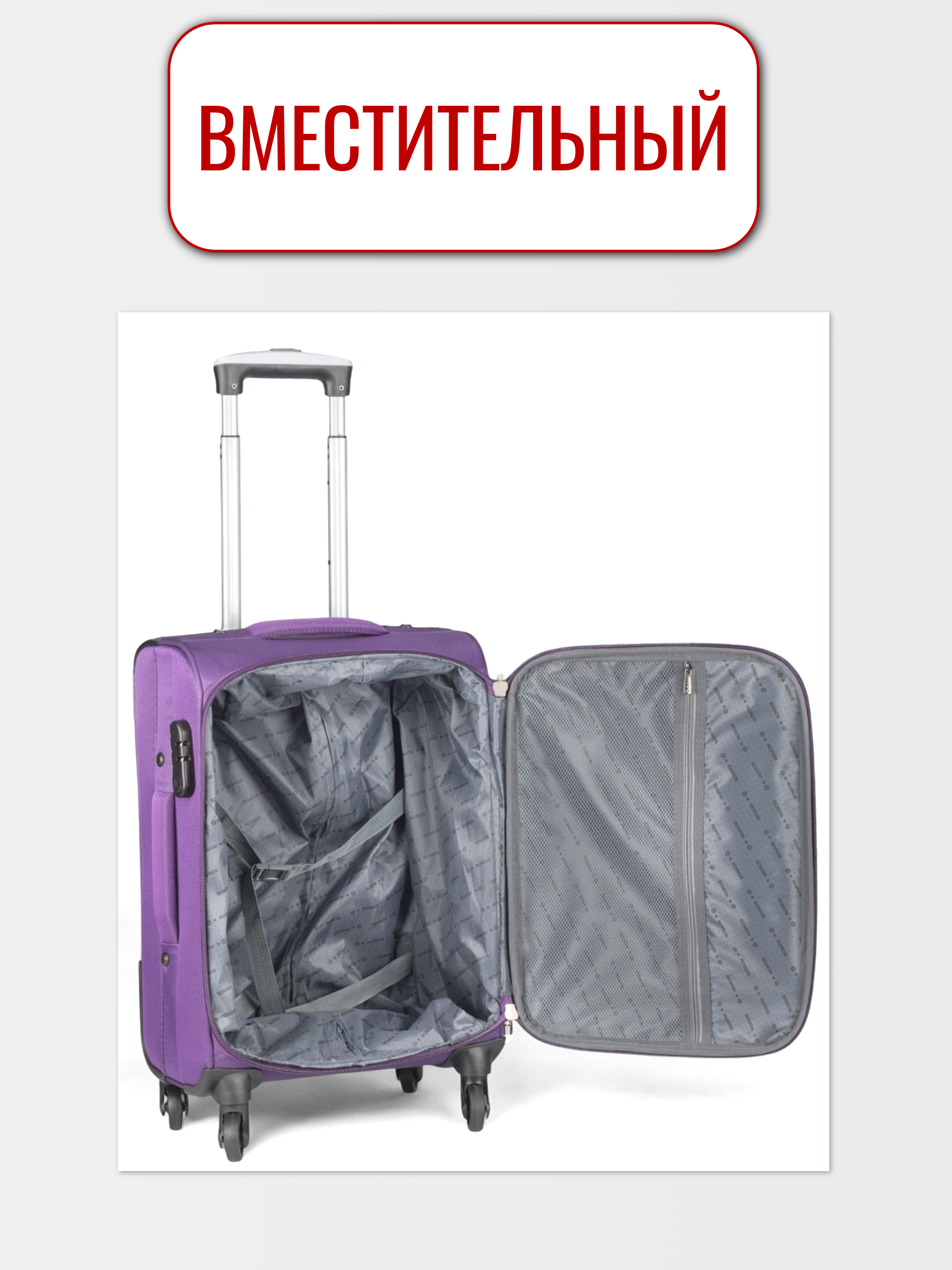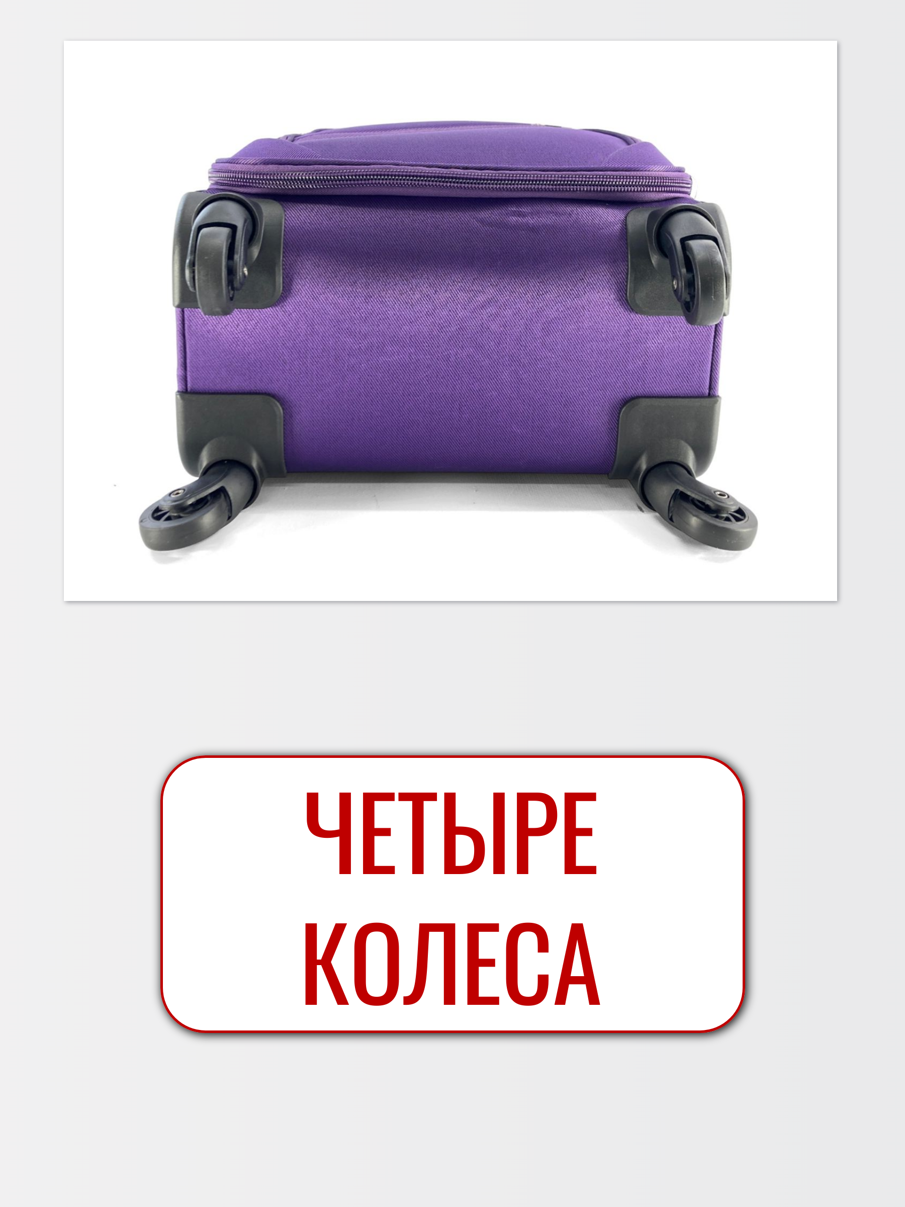 - 4 спиннер-колеса обеспечивают комфортное передвижение чемодана на любой поверхности. Они изготовлены из долговечной резины устойчивой к истиранию.