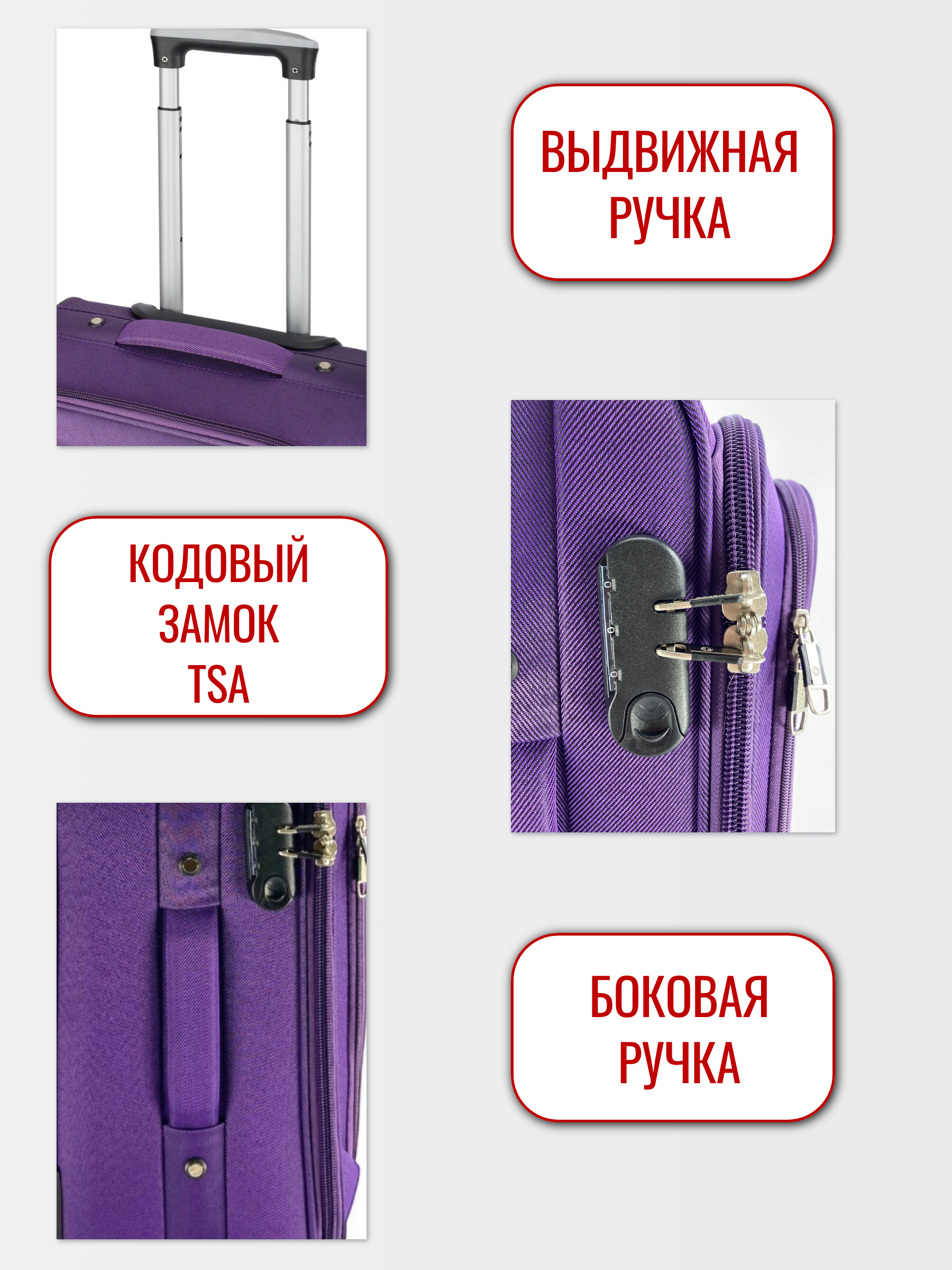 Удобная ручка из прочного пластика имеет специальную гелевую вставку для равномерного распределения веса и комфортной переноски чемодана.