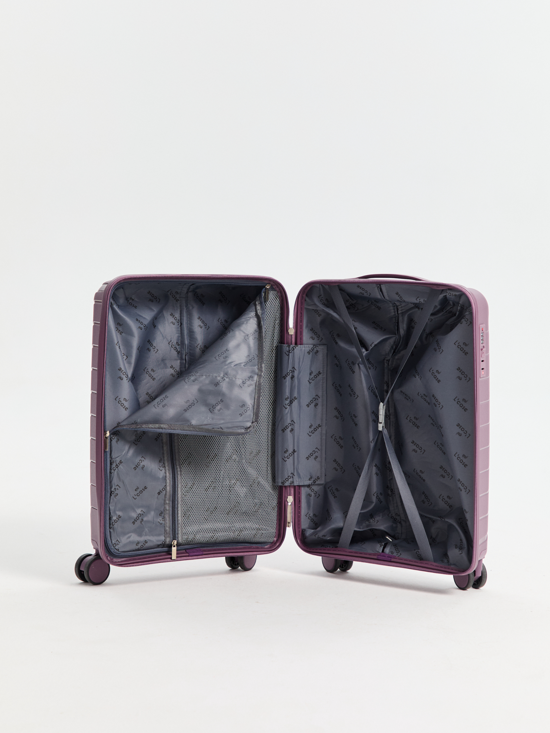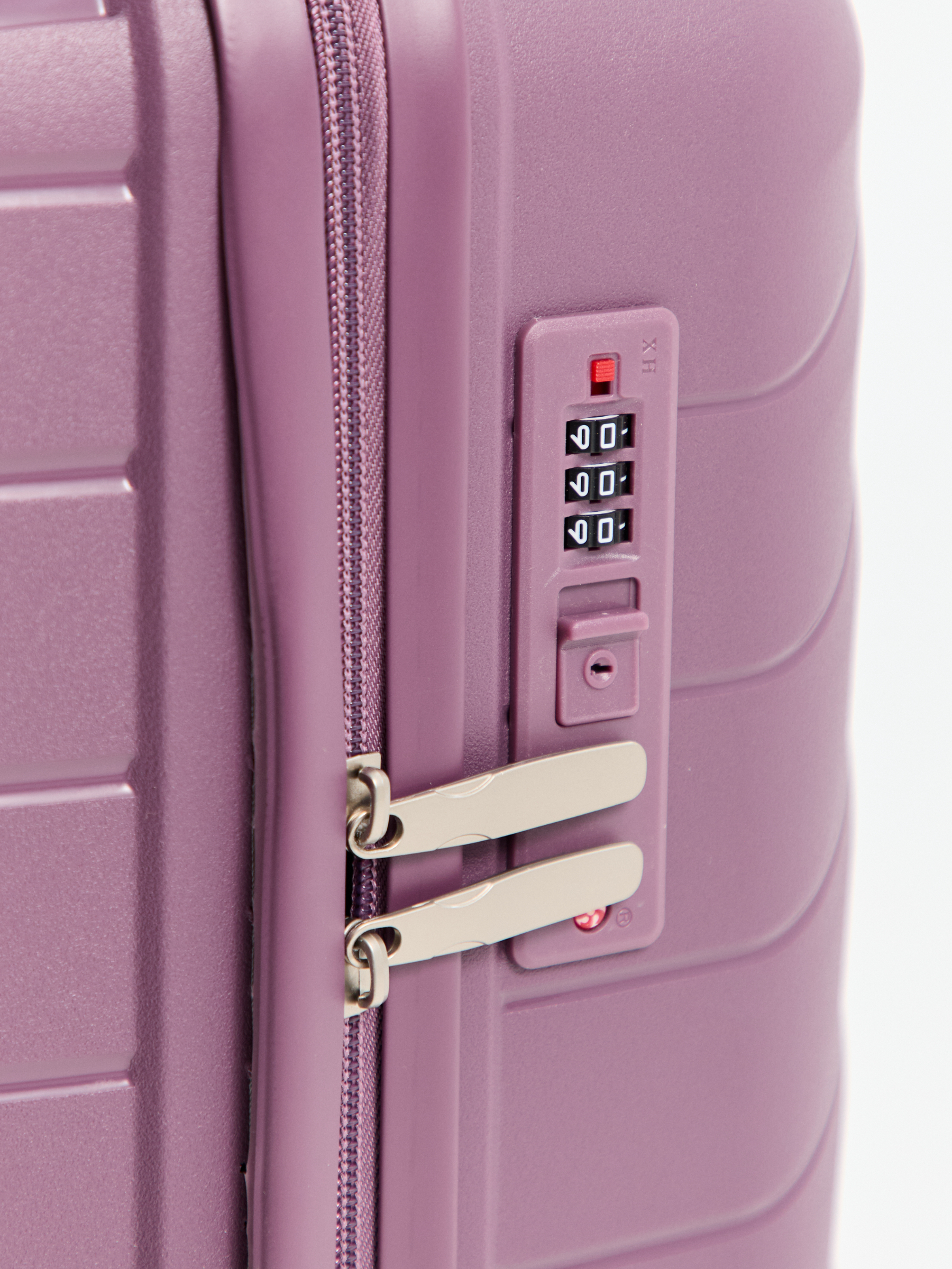 Выдвижная ручка с несколькими уровнями регулировки позволяет удобно переносить чемодан, а кодовый замок защищает содержимое от несанкционированного доступа.