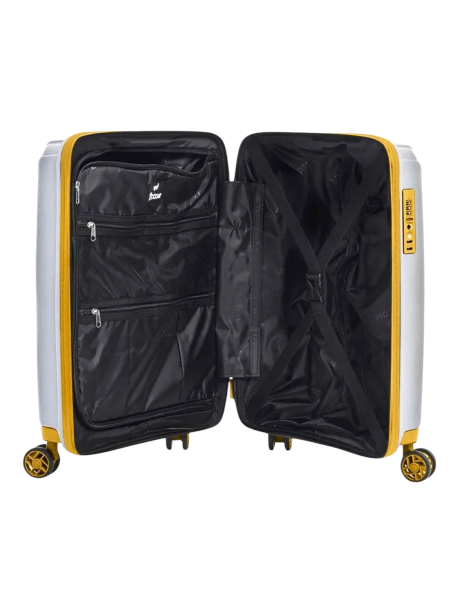 Чемодан Berlin имеет два внутренних отделения с перегородкой на молнии, внутренний карман на молнии для мелочей и ремни-фиксаторы для вещей.