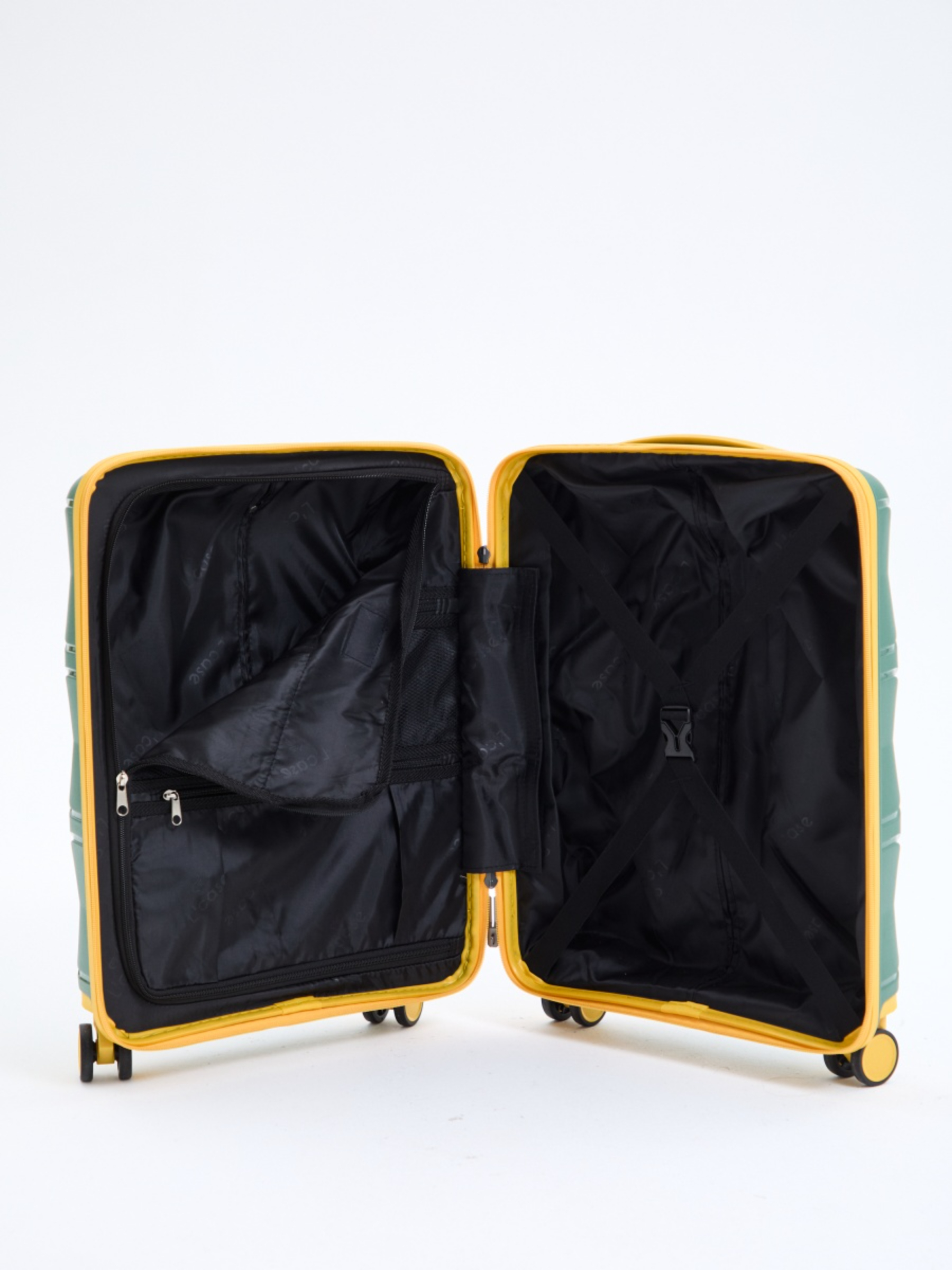 Чемодан MIAMI имеет два внутренних отделения с перегородкой на молнии, внутренний карман на молнии для мелочей и ремни-фиксаторы для вещей.