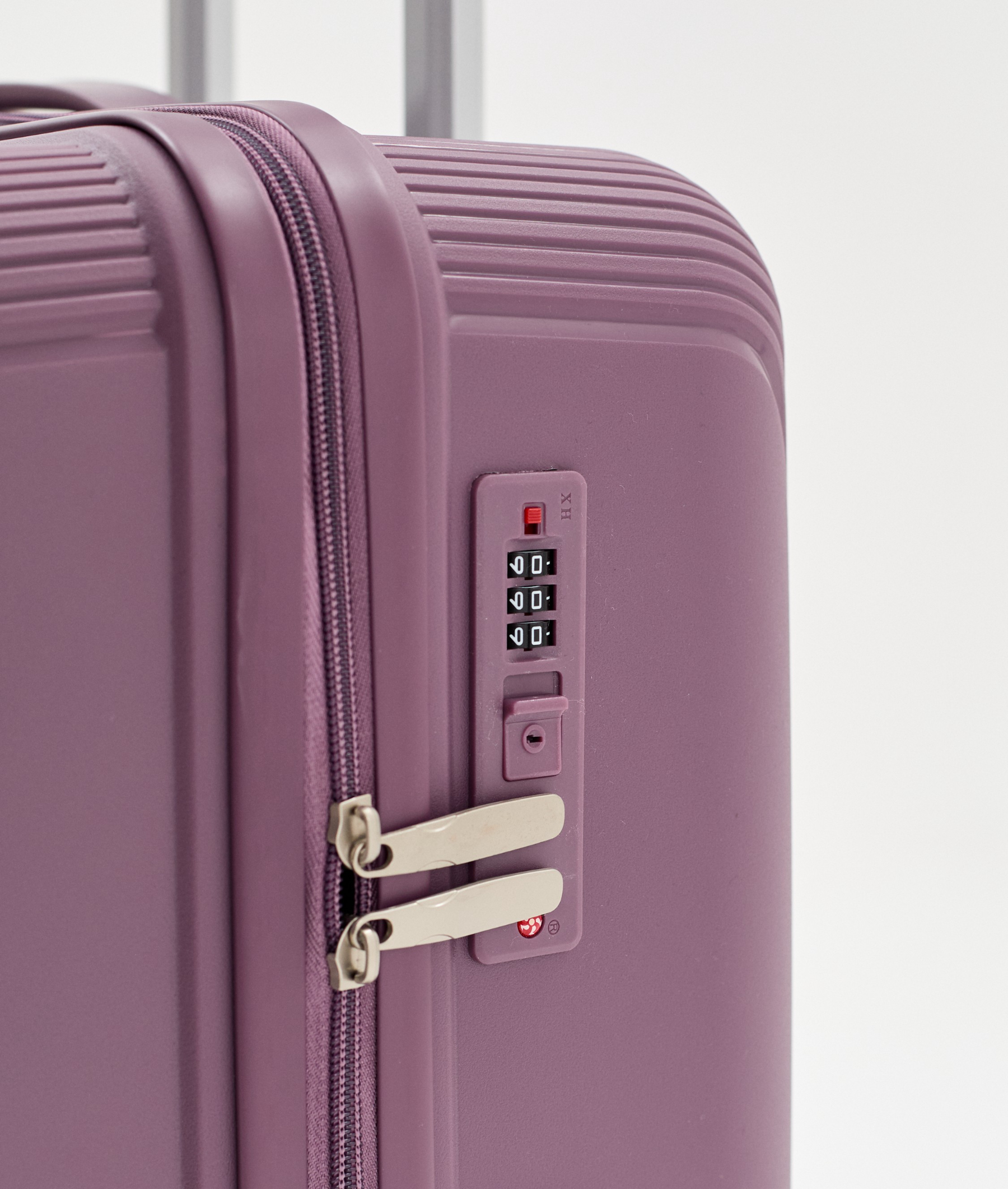 Выдвижная ручка с несколькими уровнями регулировки позволяет удобно переносить чемодан, а кодовый замок защищает содержимое от несанкционированного доступа.