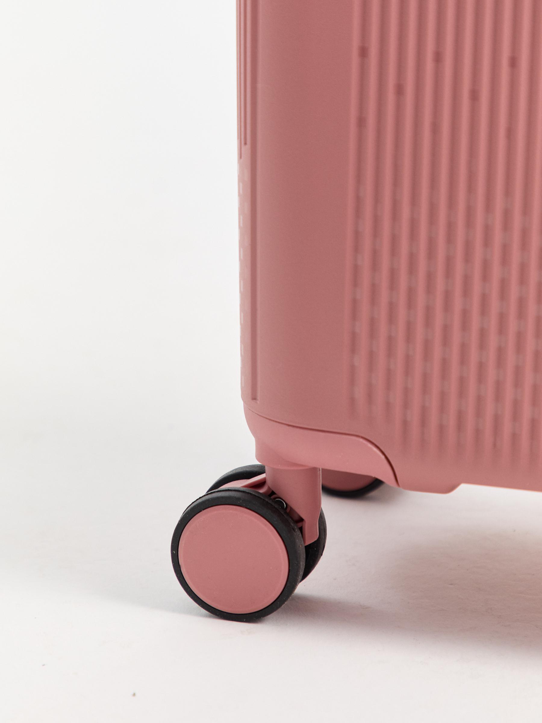 Модель оснащена двумя внутренними отделениями с перегородкой на молнии и дополнительным карманом для мелочей. Ремни-фиксаторы надежно удерживают вещи на месте, а четыре двойных колеса обеспечивают плавное и легкое маневрирование на 360 градусов.