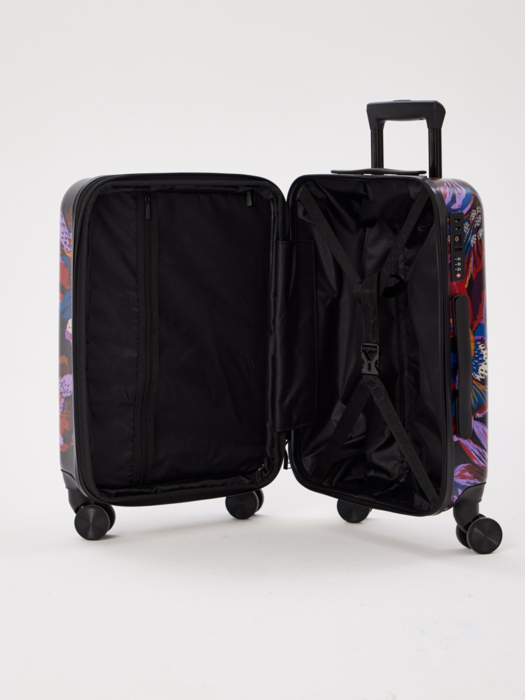 Чемодан Rio имеет два внутренних отделения с перегородкой на молнии, внутренний карман на молнии для мелочей и ремни-фиксаторы для вещей.
