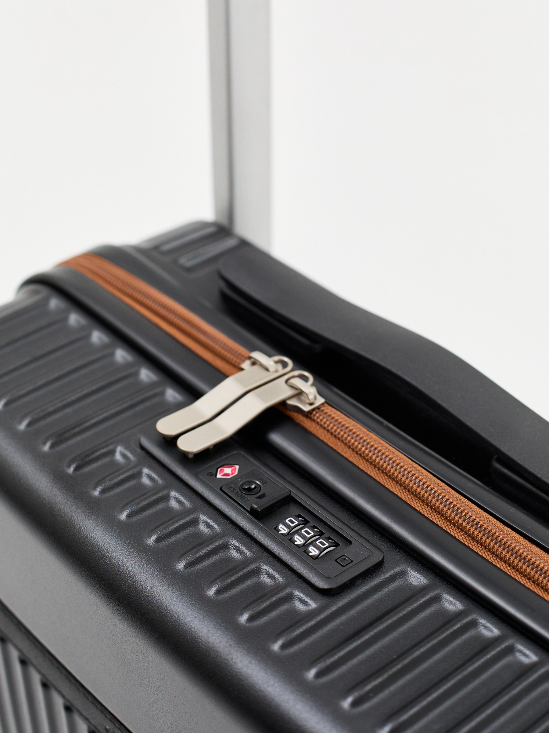 Встроенный кодовый TSA замок на молнии гарантирует безопасность багажа при международных поездках.