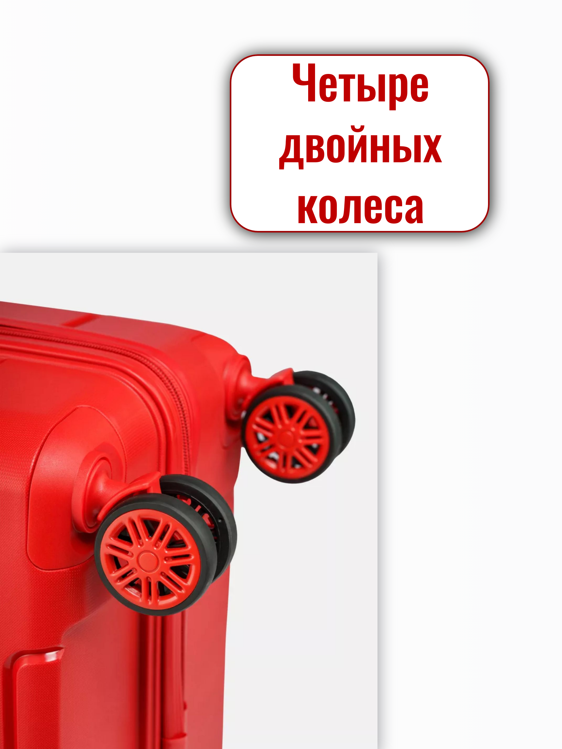 Четыре двойных колеса плавно вращаются на 360 градусов, что обеспечивает маневренность и снижает нагрузку на руки и спину.