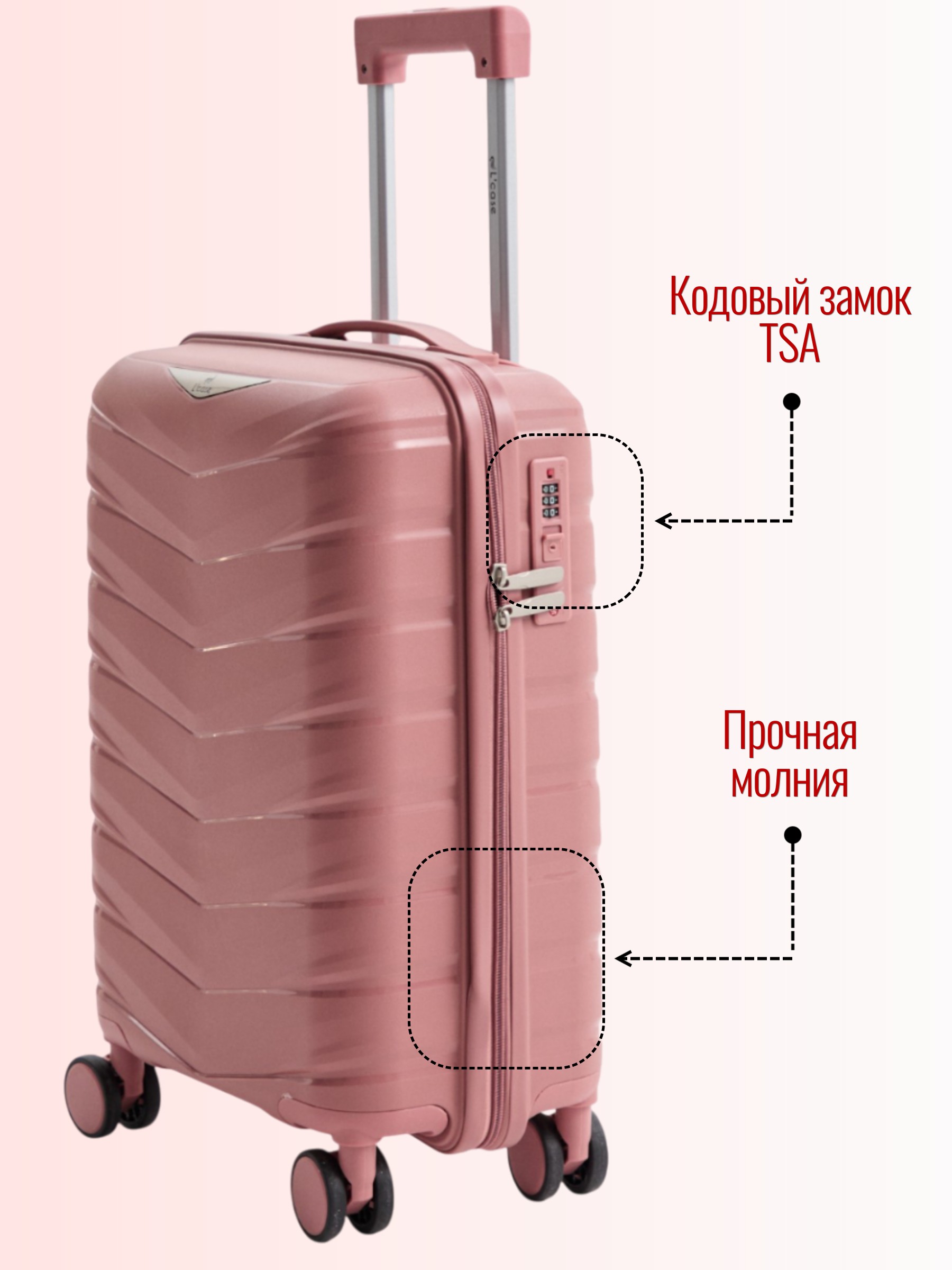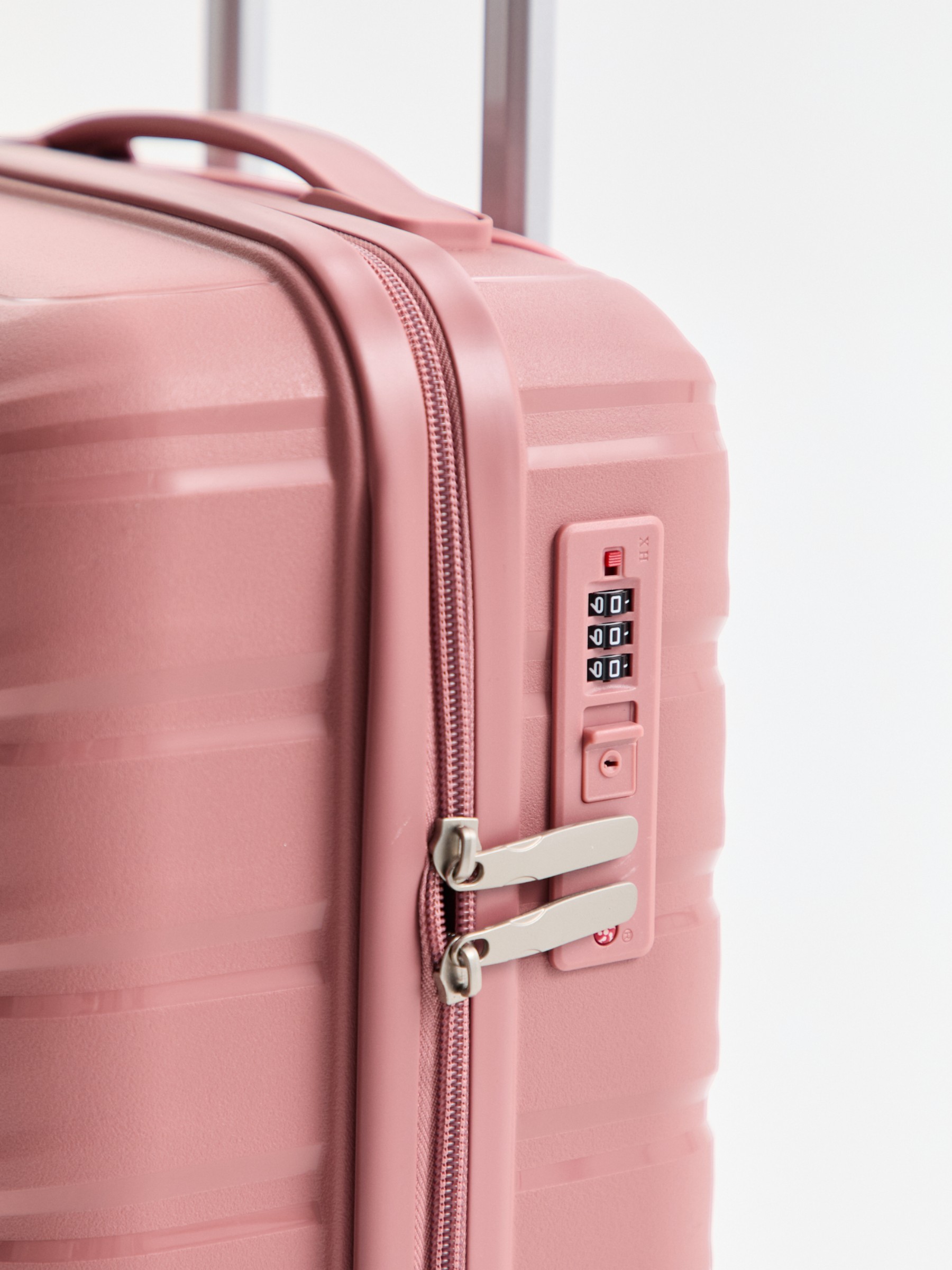 Выдвижная ручка с несколькими уровнями регулировки позволяет удобно переносить чемодан, а кодовый замок защищает содержимое от несанкционированного доступа.