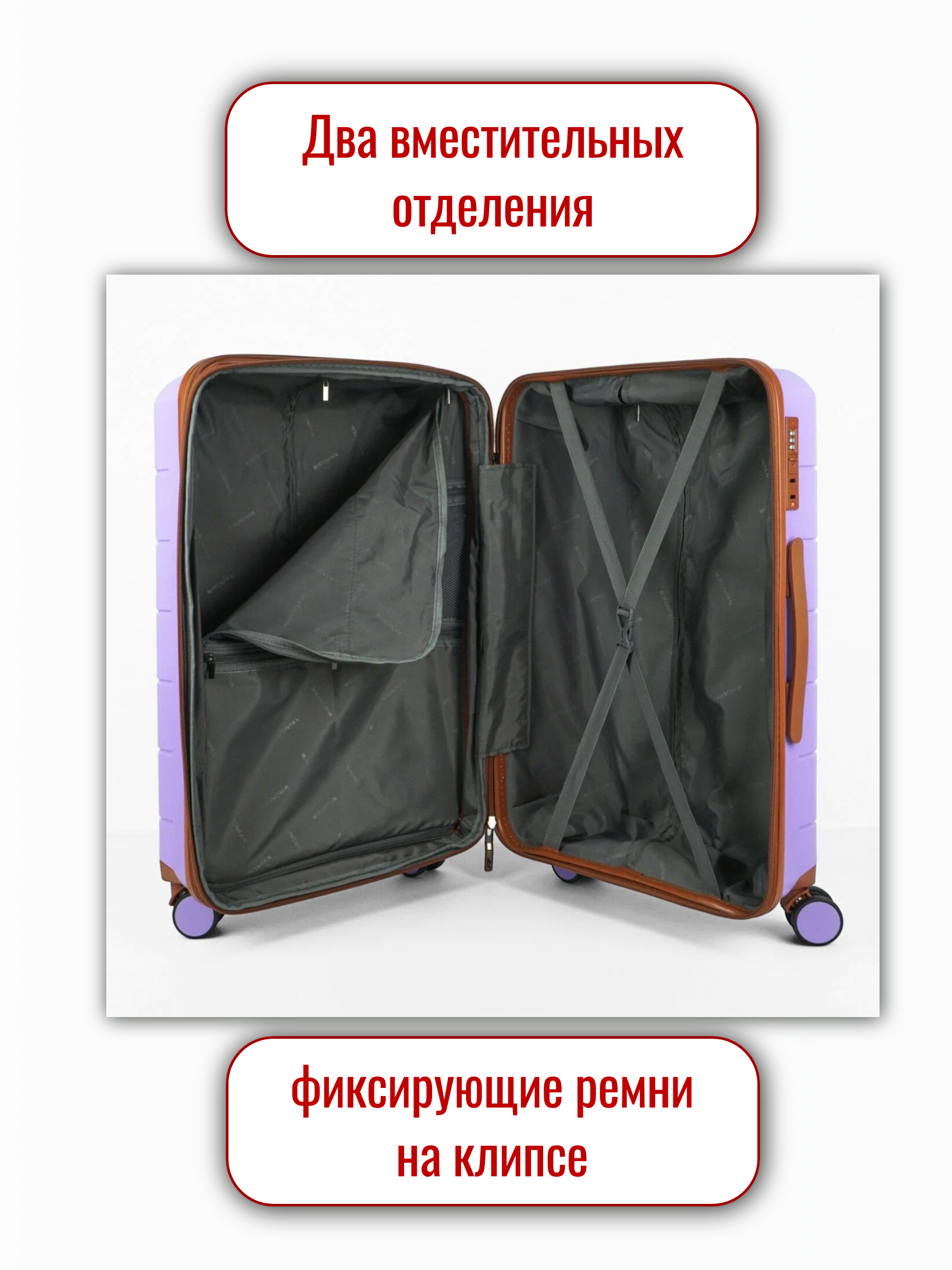 Ремни для фиксации одежды: да. Внутренний карман: да. Карман сетка: да.