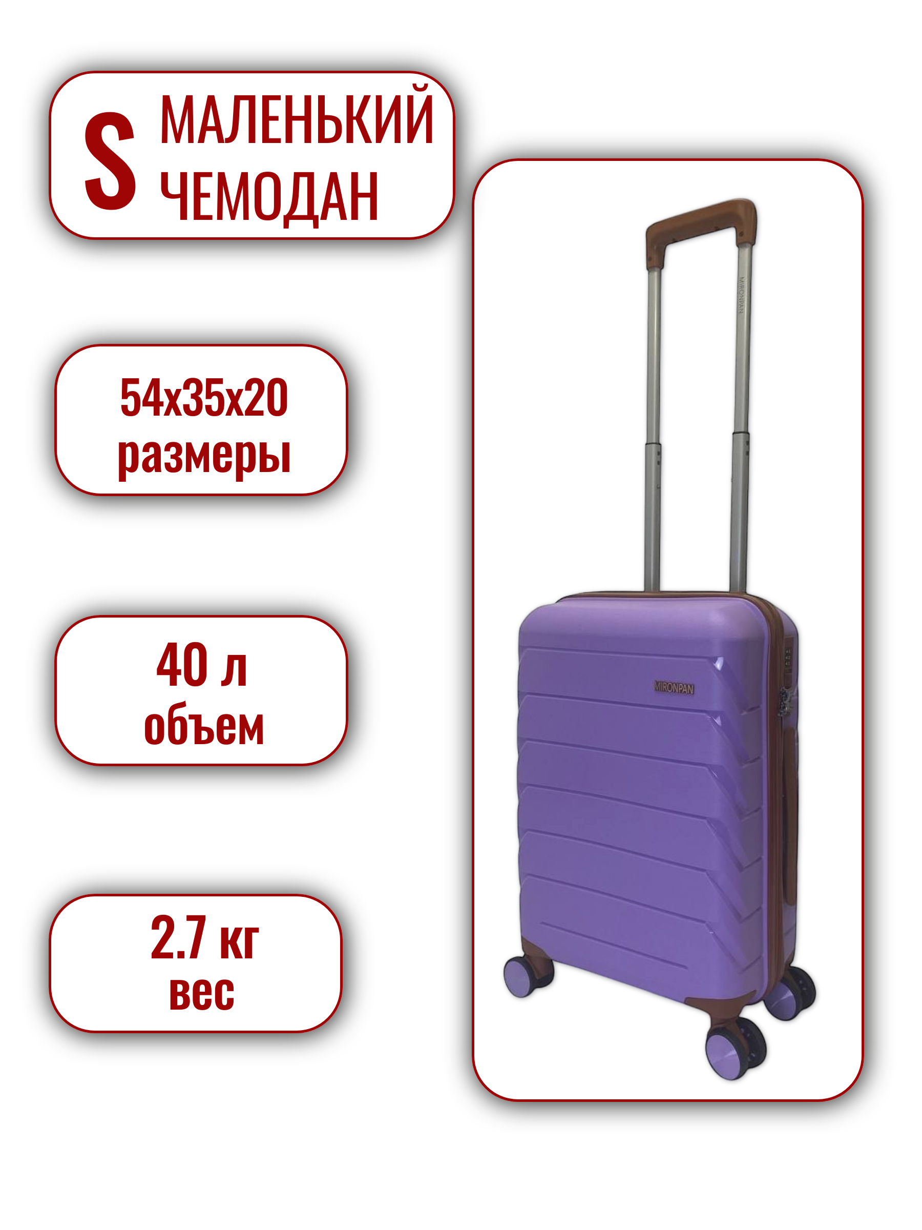 Габариты, см: 54х35х20. Размер: S. 20 дюймов. Вес, кг: 2,7. Объем, л: 40. Без расширения.