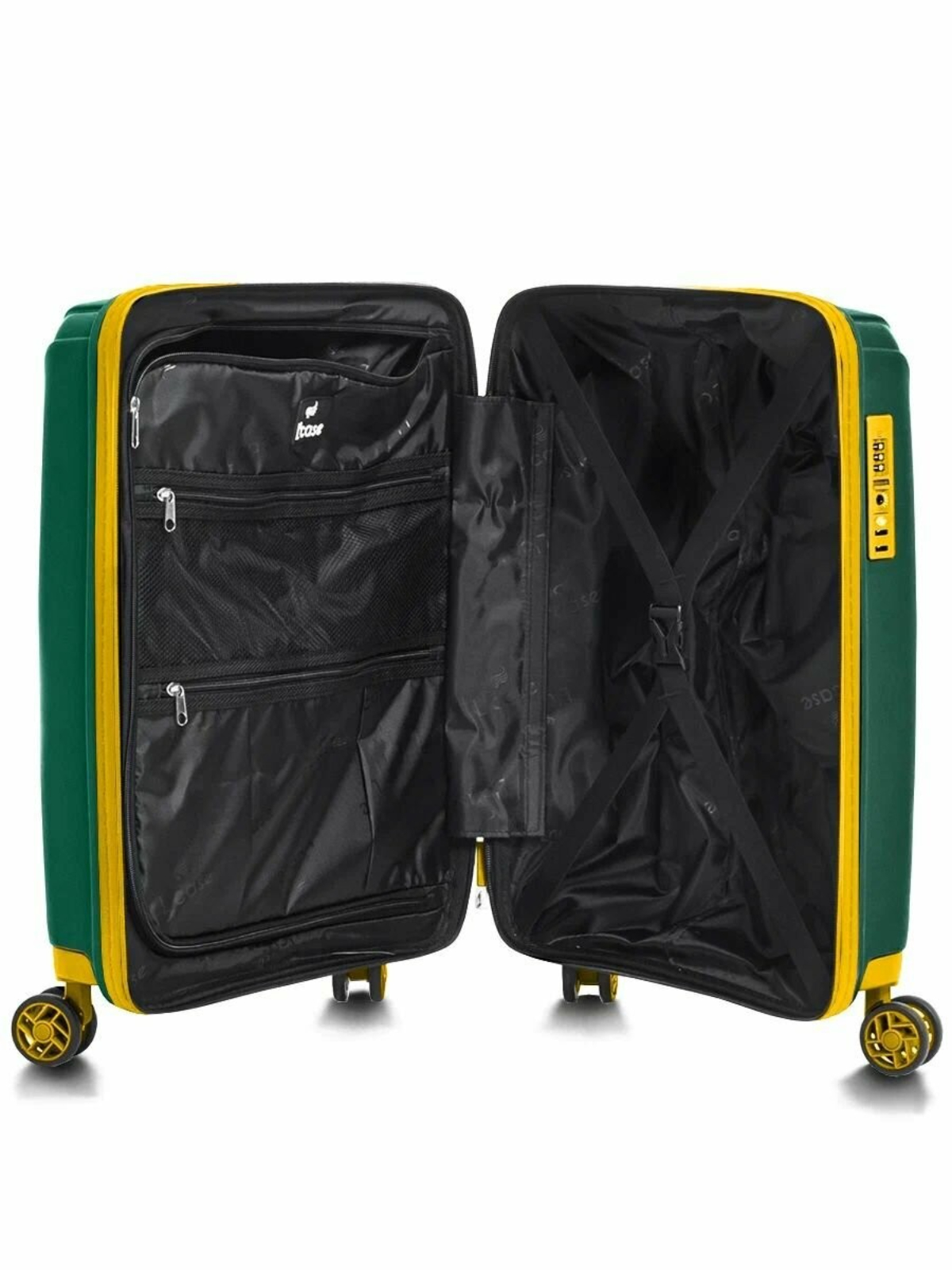 Чемодан Berlin имеет два внутренних отделения с перегородкой на молнии, внутренний карман на молнии для мелочей и ремни-фиксаторы для вещей.