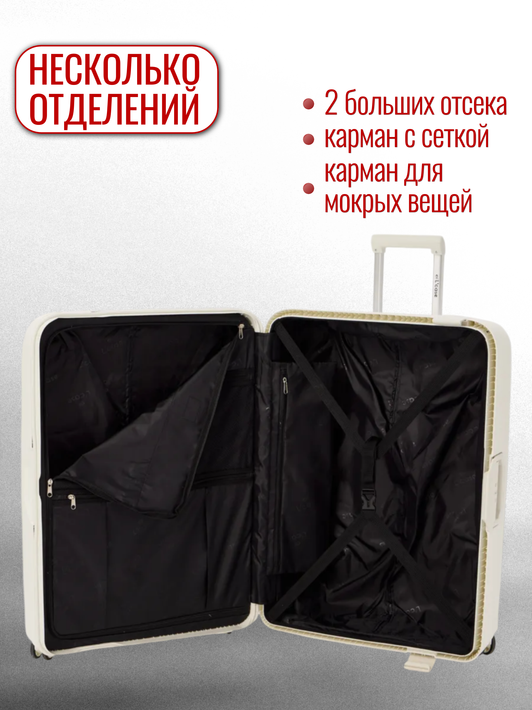 Линейка Lisbon бренда L’case выполнена из прочного жесткого полипропилена – современного материала, который отличается особой ударостойкостью, и дополнена гибкими водонепроницаемыми молниями.