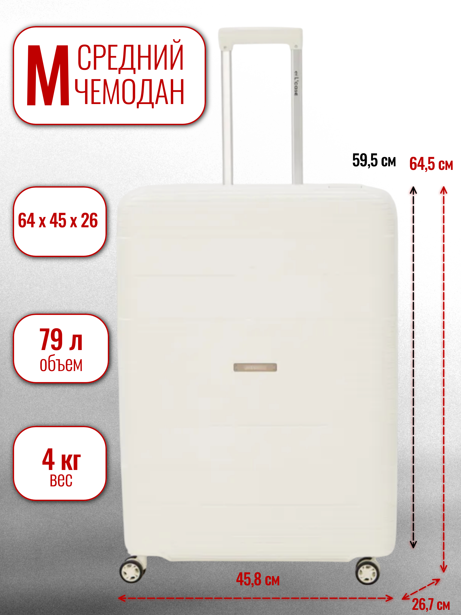 Выдвижная ручка: да. Боковая ручка: да. Количество колёс: 4. Колеса 360°: да.