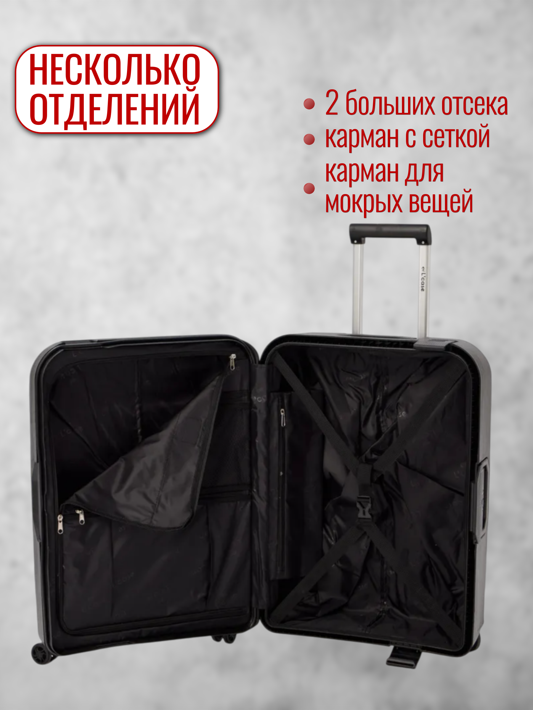 Линейка Lisbon бренда L’case выполнена из прочного жесткого полипропилена – современного материала, который отличается особой ударостойкостью, и дополнена гибкими водонепроницаемыми молниями.