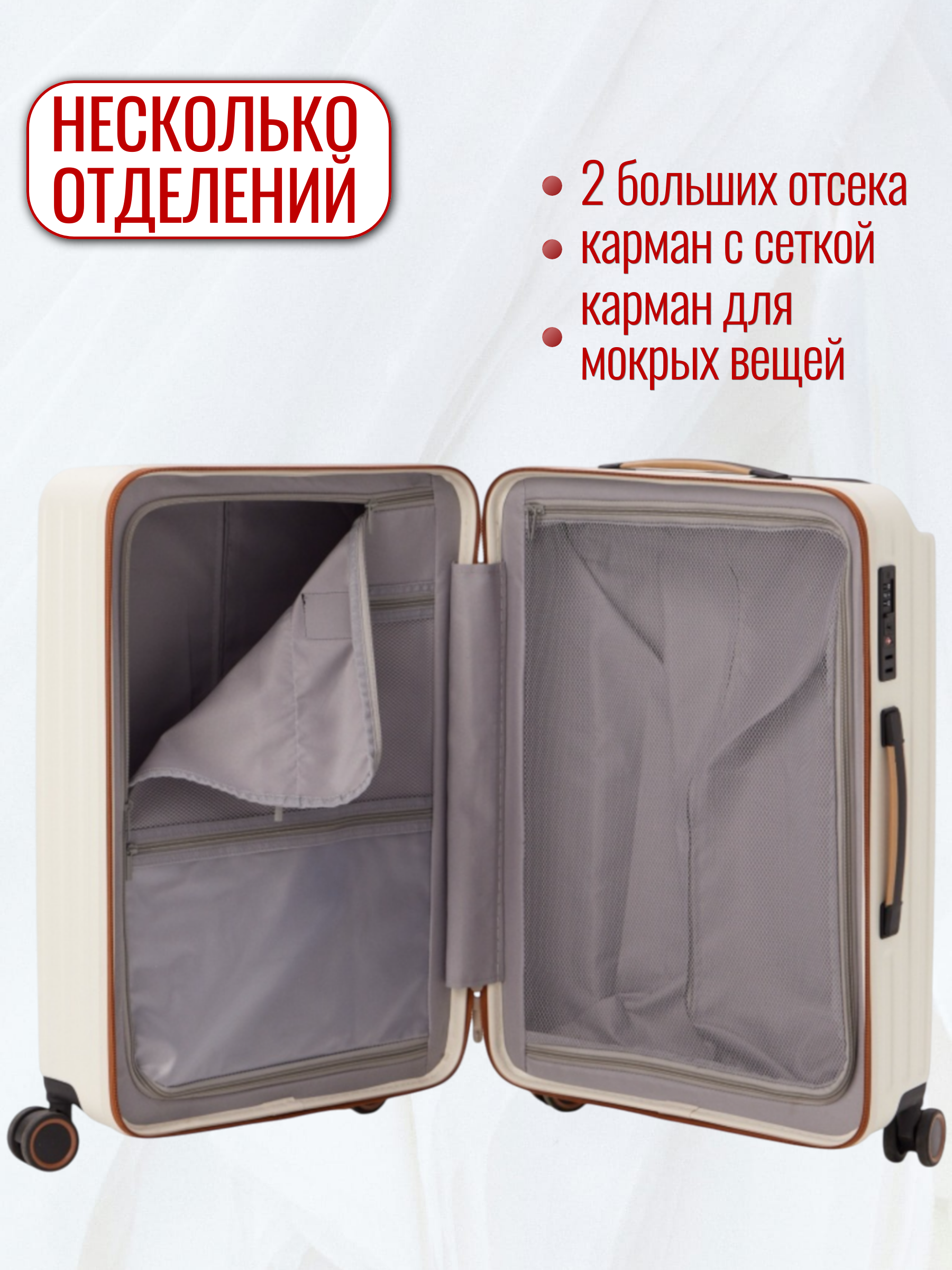 Чемодан Milan имеет два внутренних отделения с перегородкой на молнии, внутренний карман на молнии для мелочей и ремни-фиксаторы для вещей.