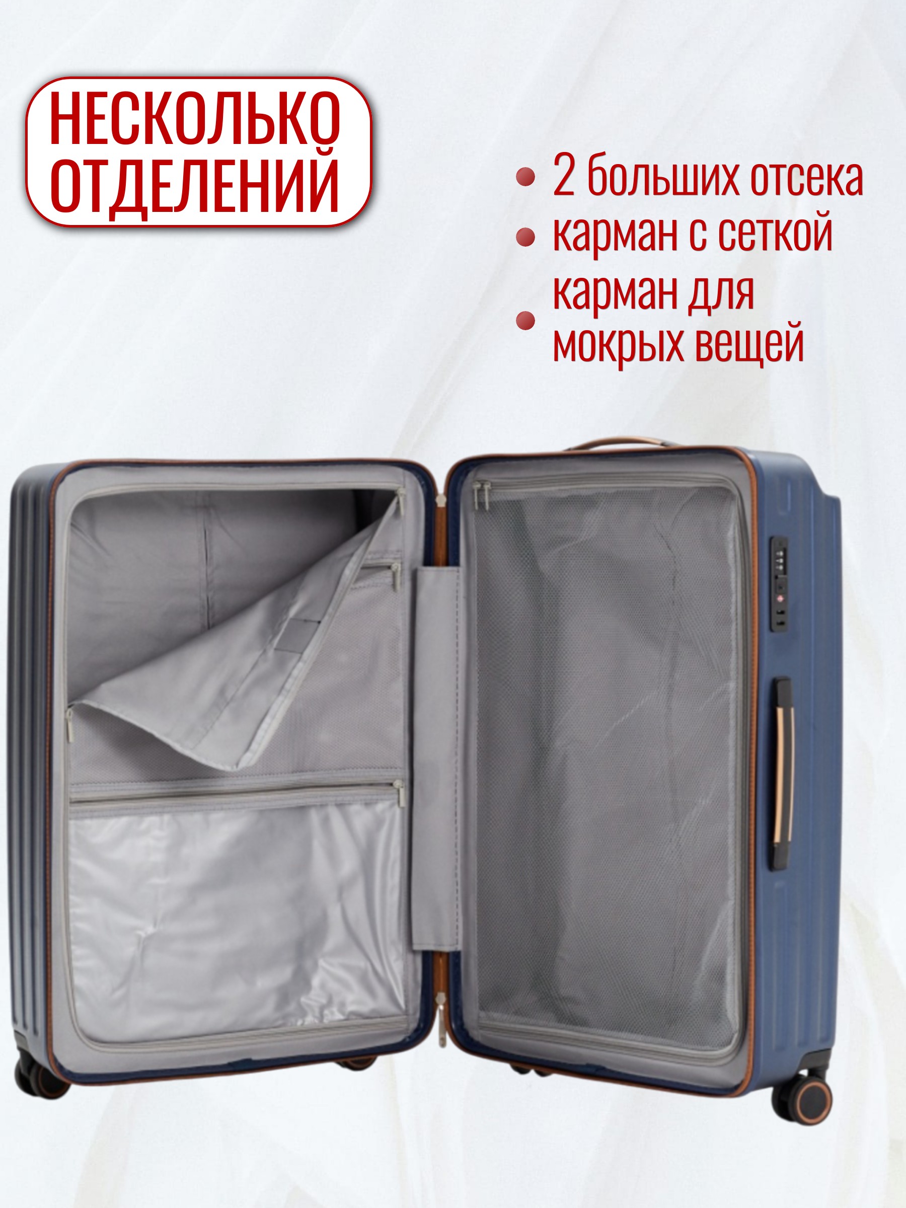 Чемодан Milan имеет два внутренних отделения с перегородкой на молнии, внутренний карман на молнии для мелочей и ремни-фиксаторы для вещей.