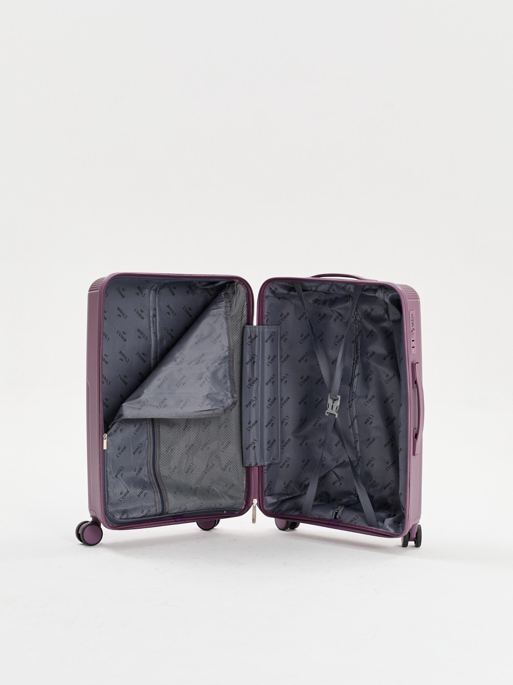 Модель оснащена двумя внутренними отделениями с перегородкой на молнии и дополнительным карманом для мелочей. Ремни-фиксаторы надежно удерживают вещи на месте, а четыре двойных колеса обеспечивают плавное и легкое маневрирование на 360 градусов.