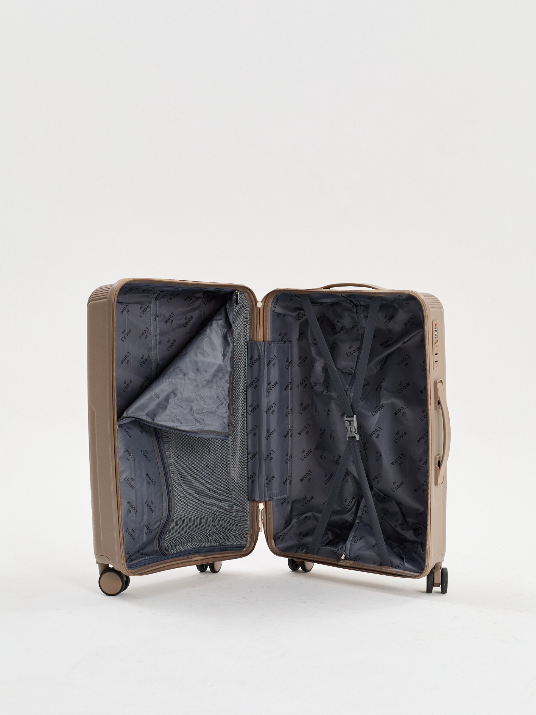 Чемодан Riga от L’case выполнен из прочного полипропилена, который отличается легкостью и устойчивостью к механическим повреждениям.