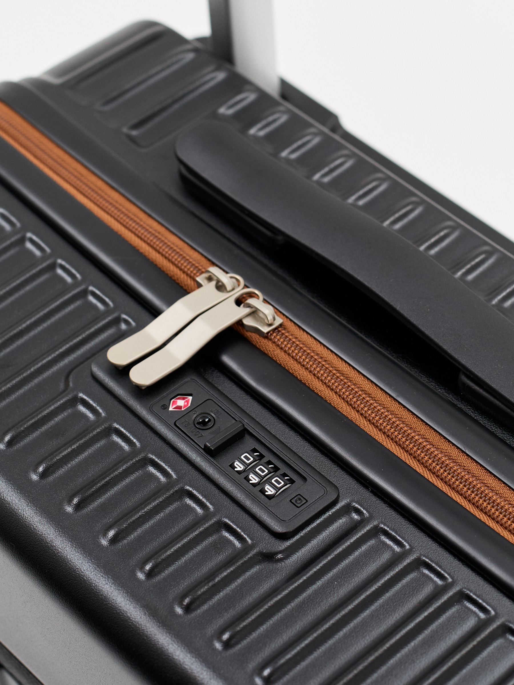 Встроенный кодовый TSA замок на молнии гарантирует безопасность багажа при международных поездках.