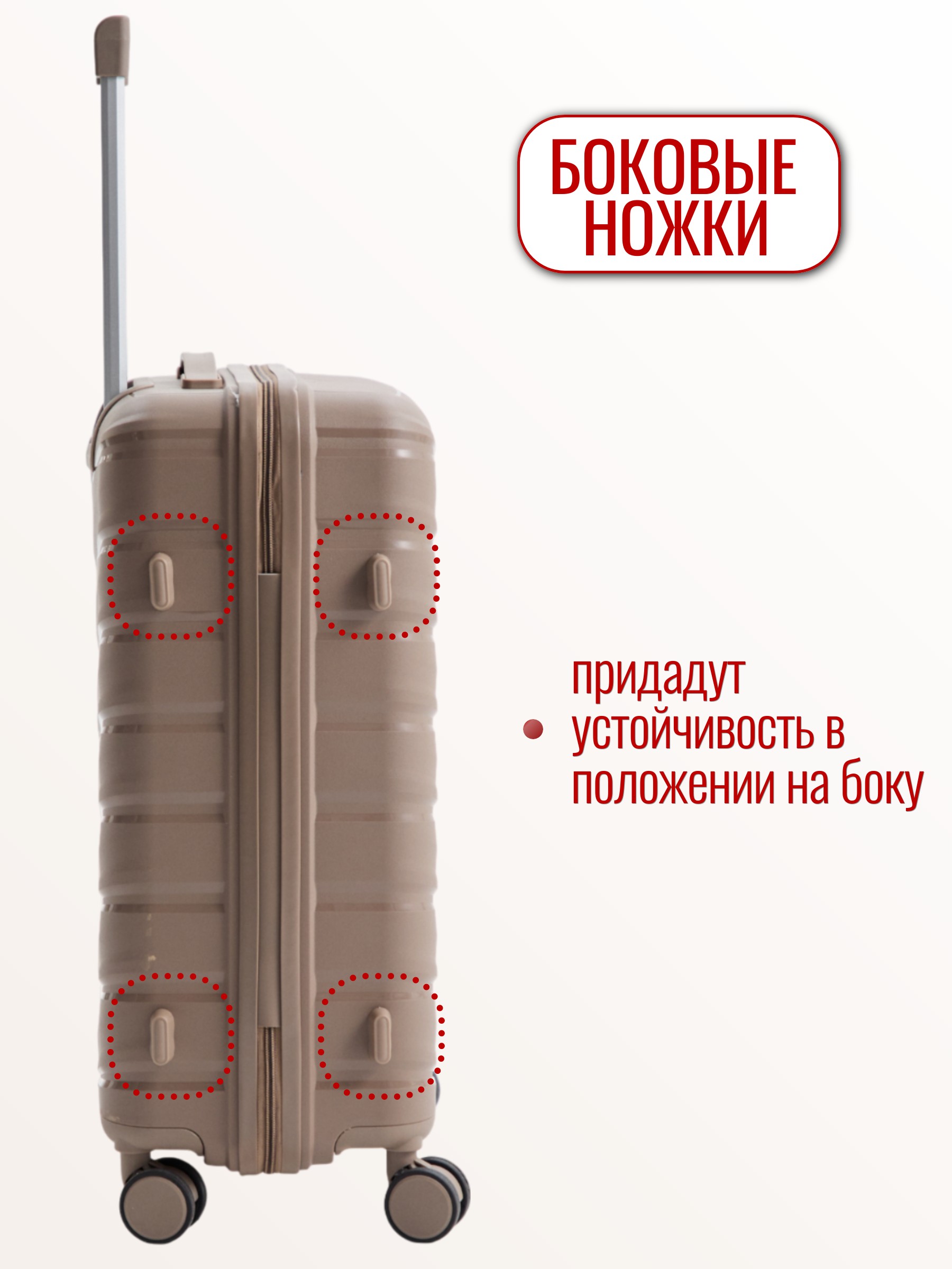 Выдвижная ручка: да. Боковая ручка: да. Количество колёс: 4. Колеса 360°: да.