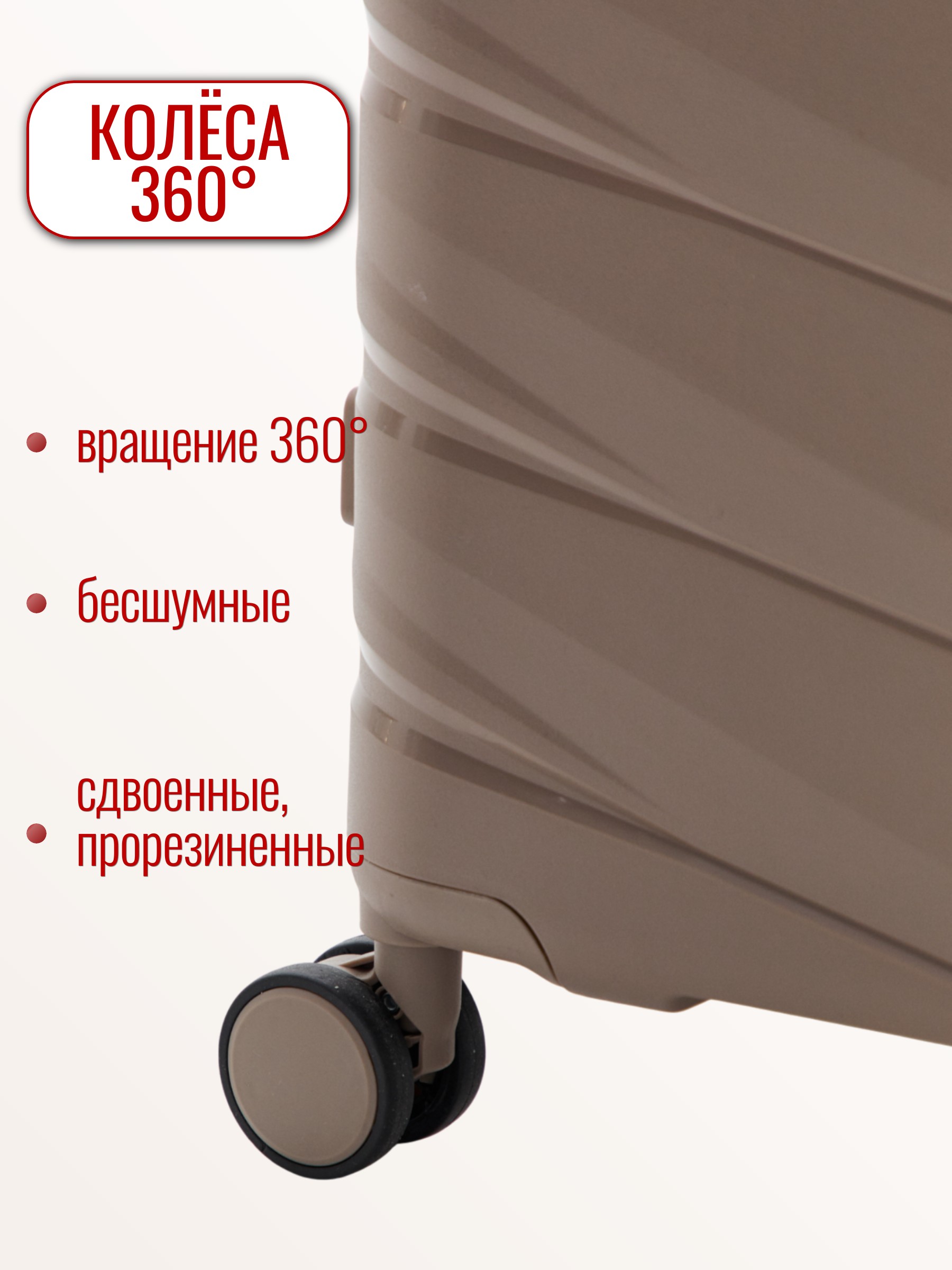 Ремни-фиксаторы надежно удерживают вещи на месте, а четыре двойных колеса обеспечивают плавное и легкое маневрирование на 360 градусов.