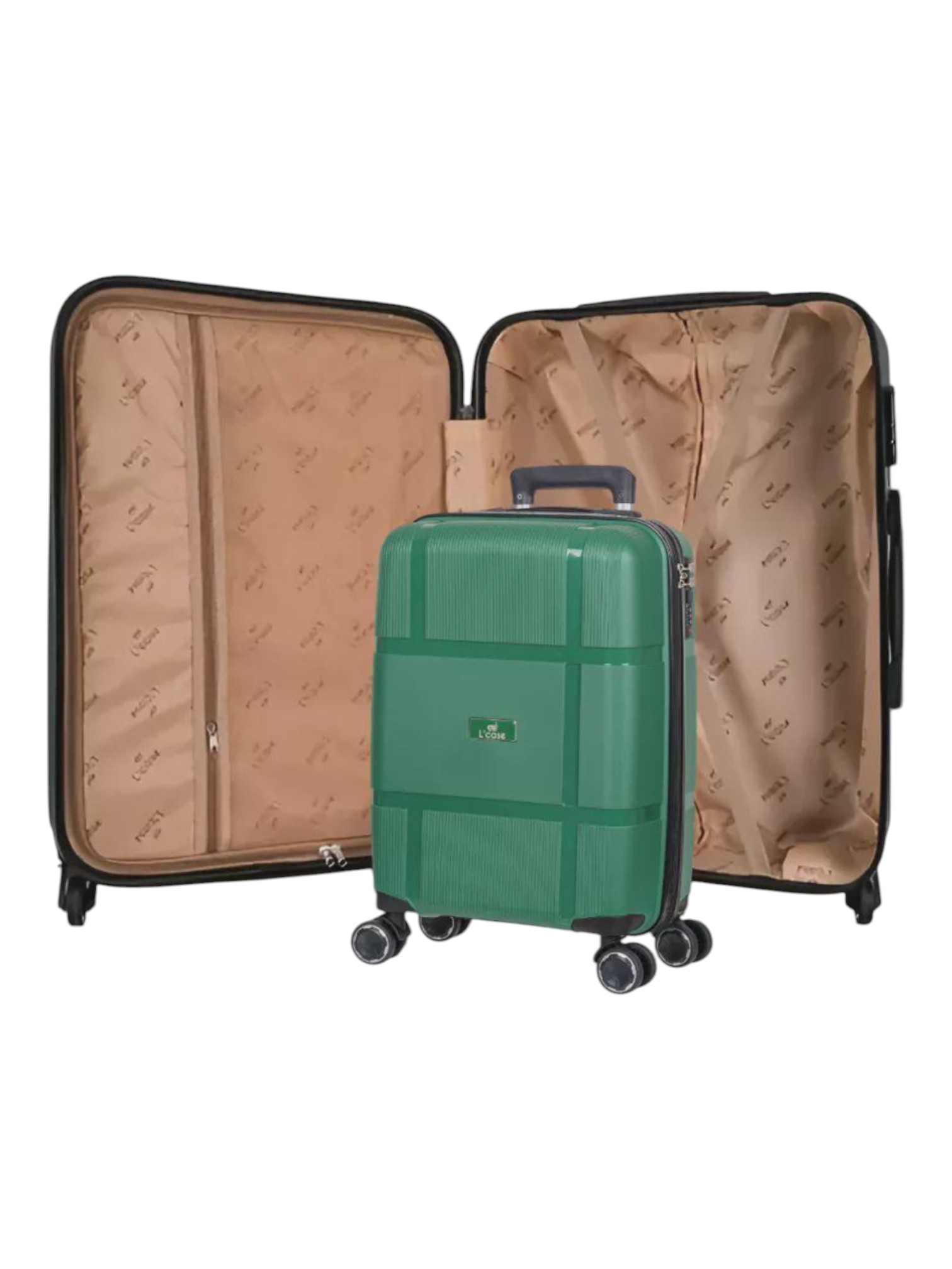 Чемоданы Gua имеют два внутренних отделения с перегородкой на молнии, внутренний карман на молнии для мелочей и ремни-фиксаторы для вещей.