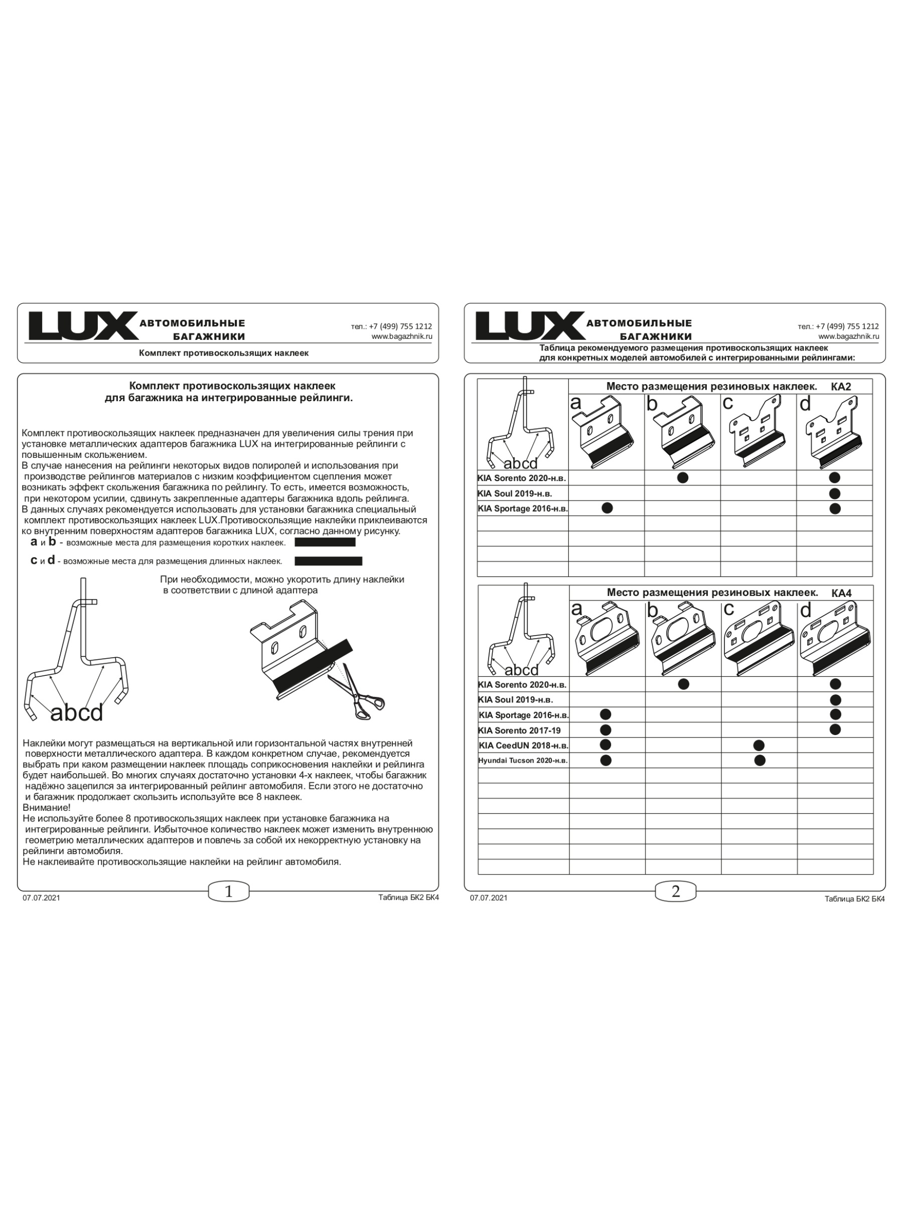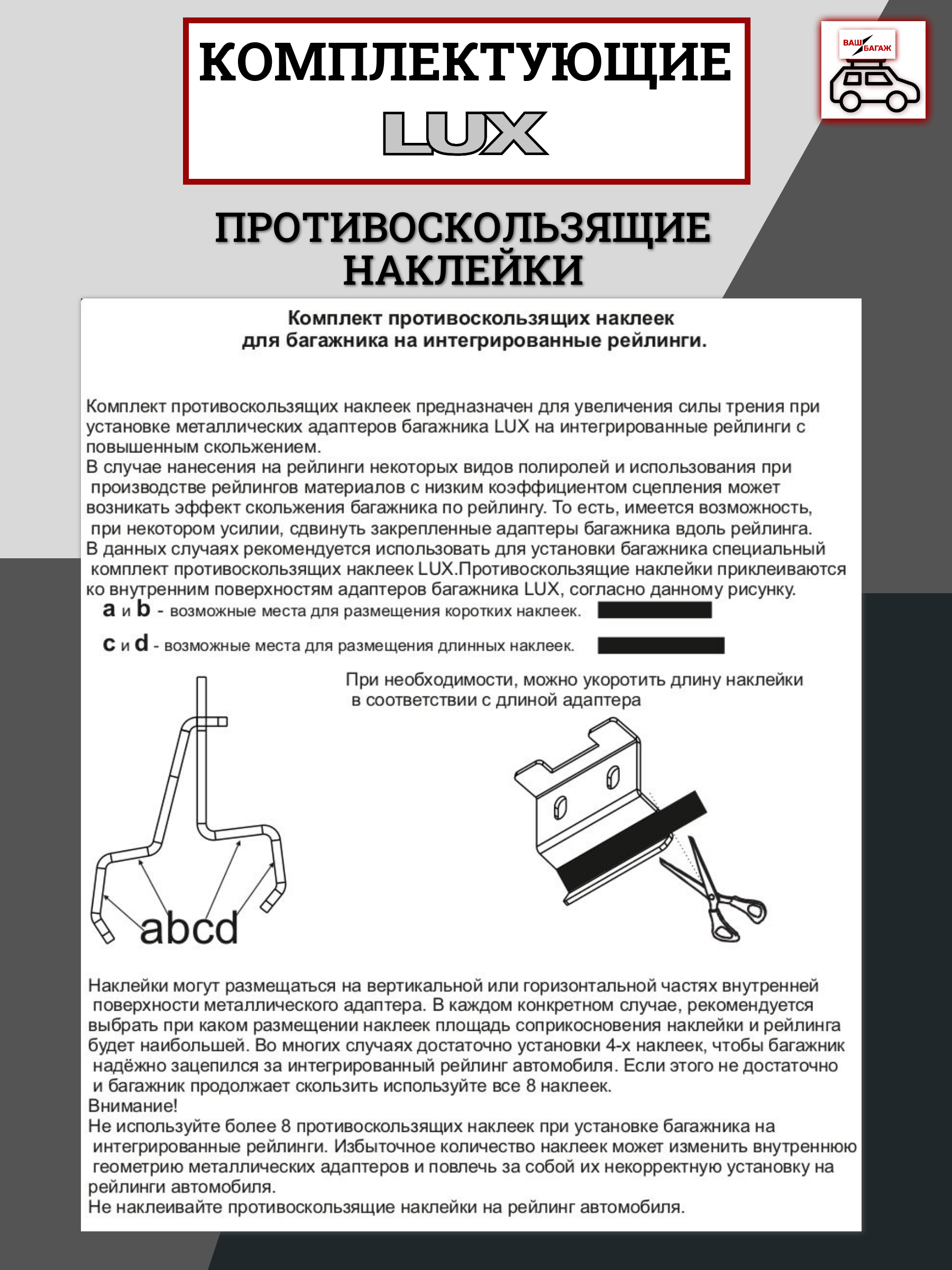 Комплект противоскользящих наклеек для установки багажника на интегрированные рейлинги.