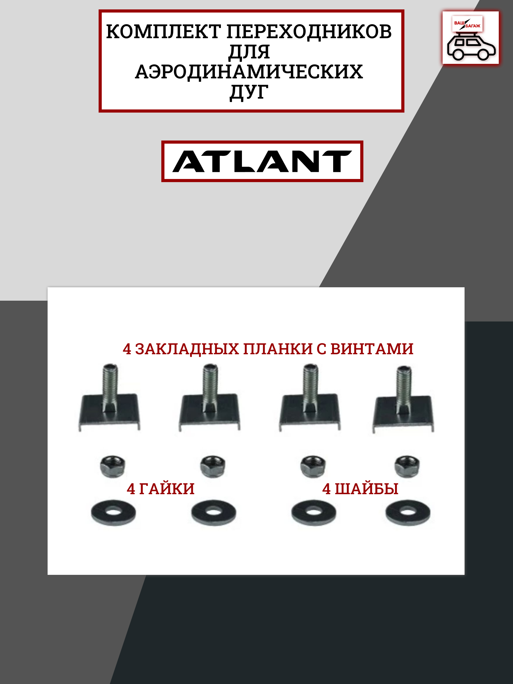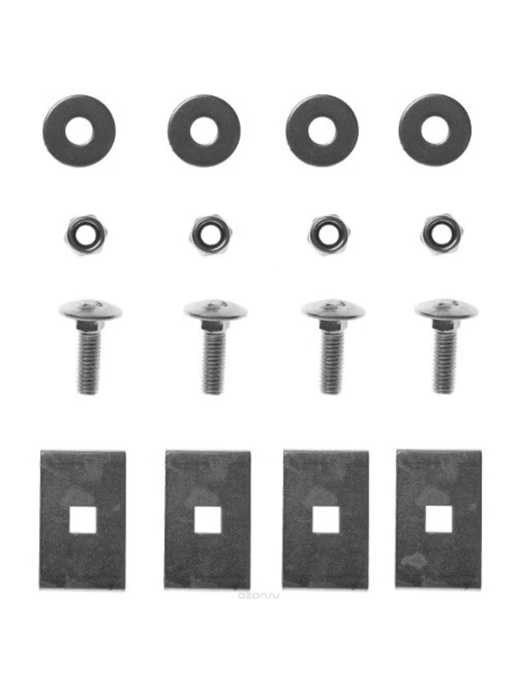 В комплект входит 4 закладных планки с винтами, 4 гайки и 4 шайбы.