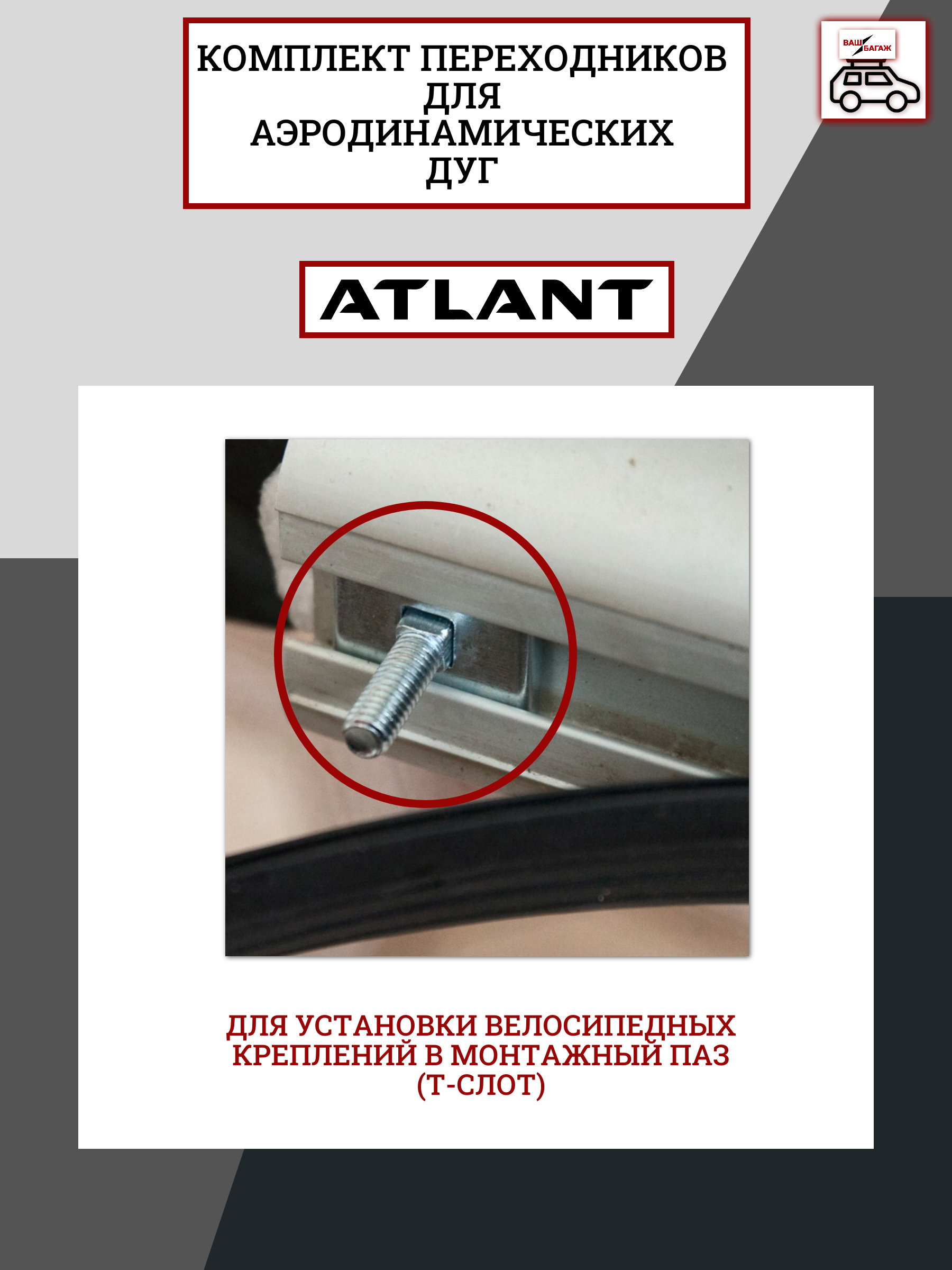 Закладная планка вставляется в верхний паз аэродинамических поперечных дуг багажника Атлант (так называемый "Т-профиль" или "Т-слот").
