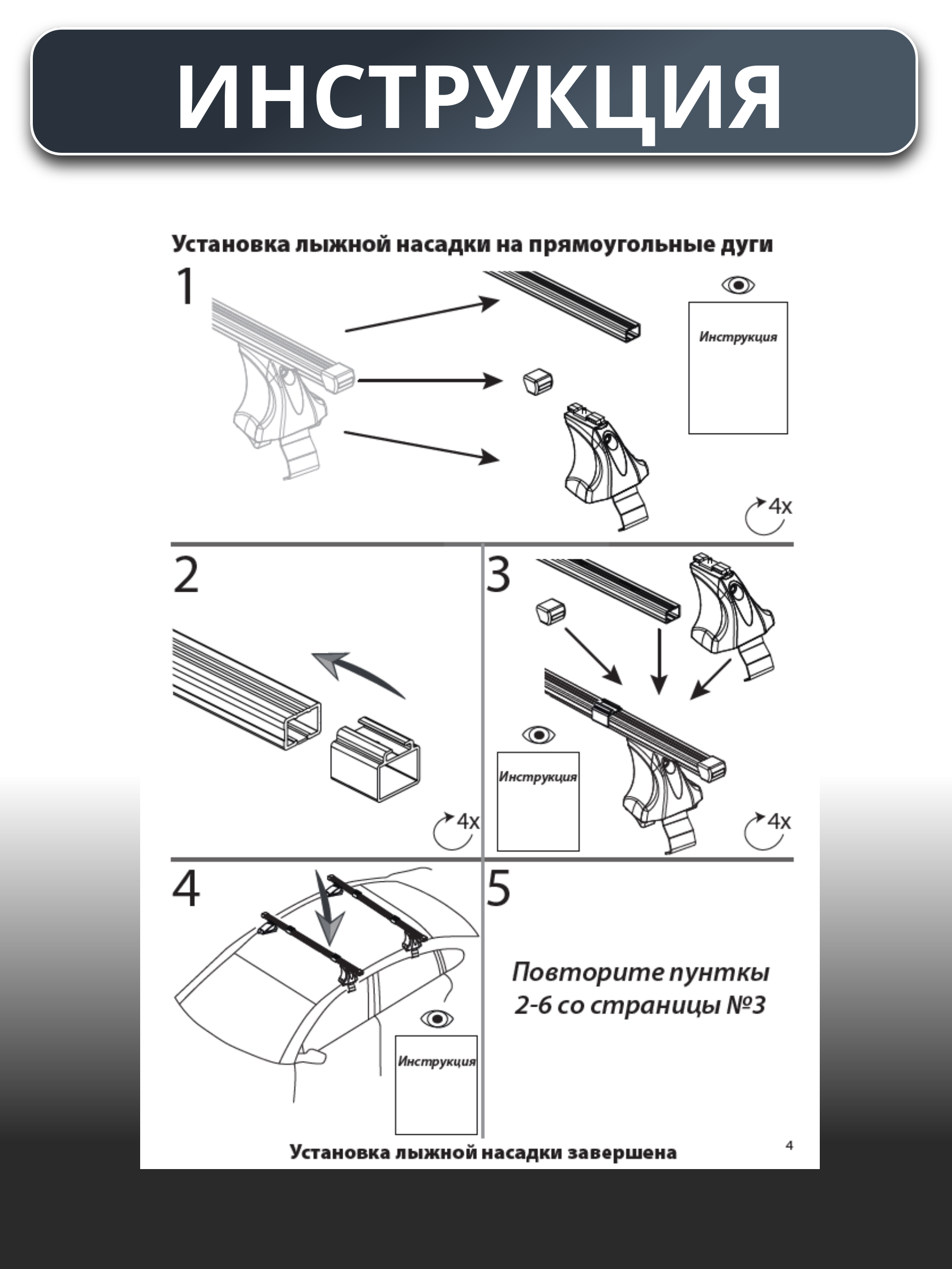 Крепления подходят для транспортировки 6-и пар лыж или 4-х сноубордов.