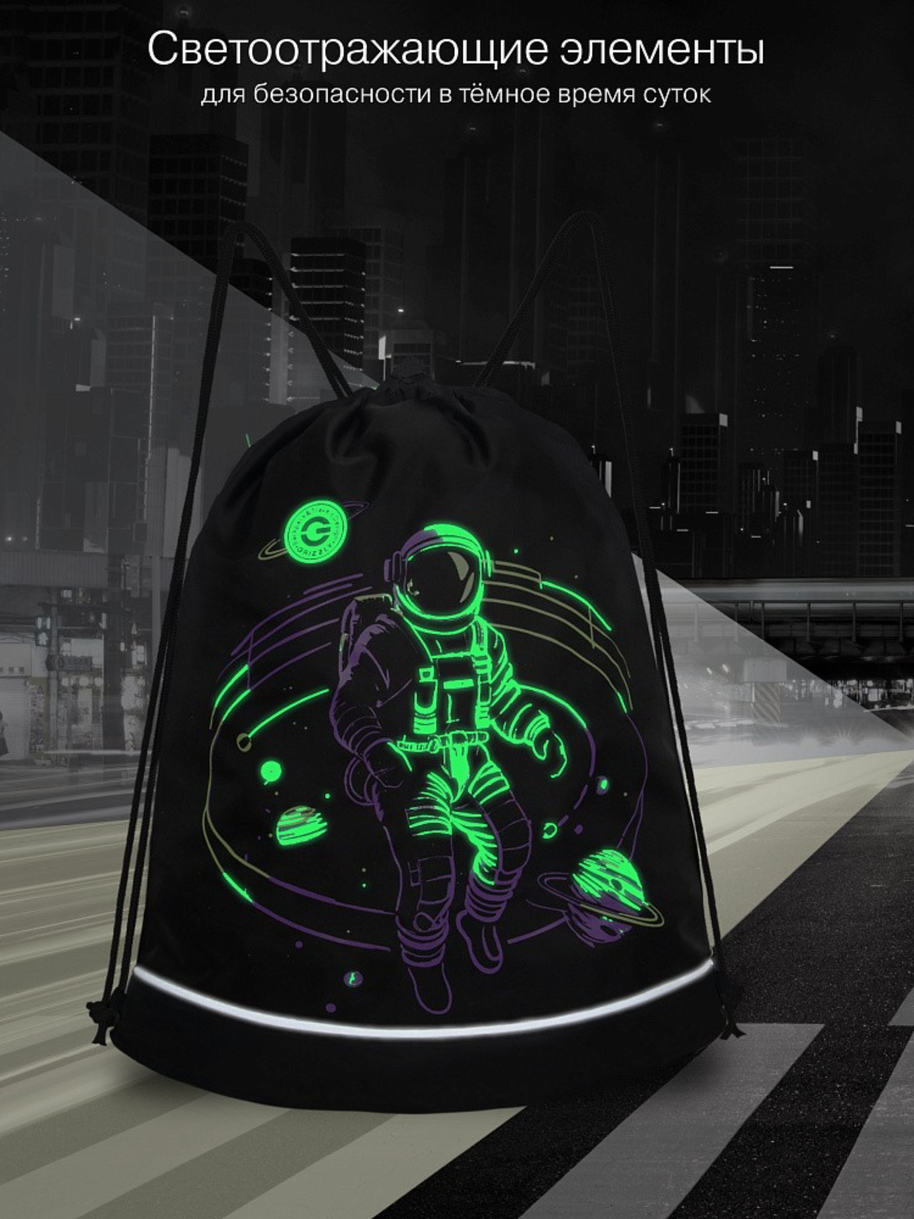 У мешка есть дополнительная ручка-петля, боковой карман на молнии, укрепленное дно и светоотражающие элементы.
