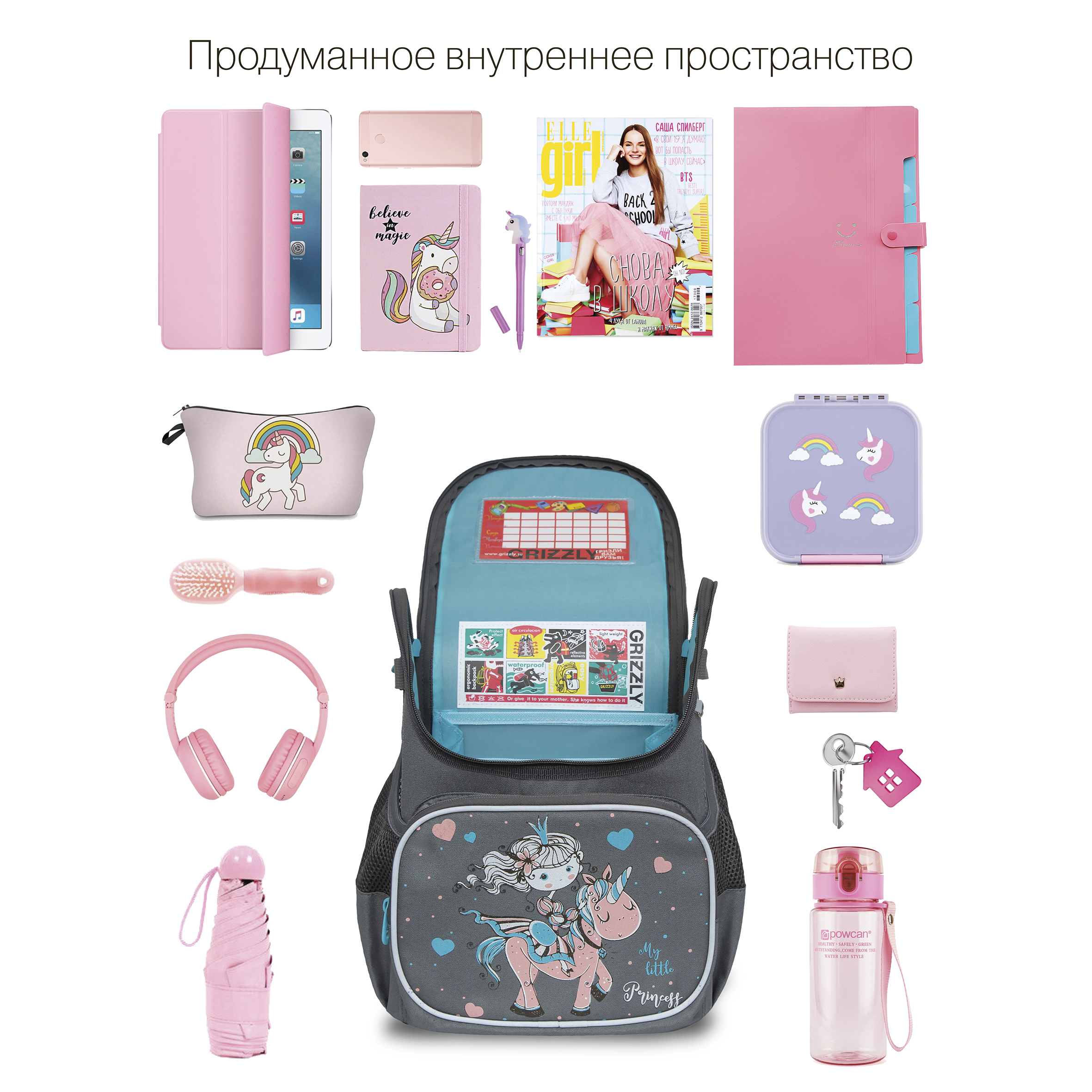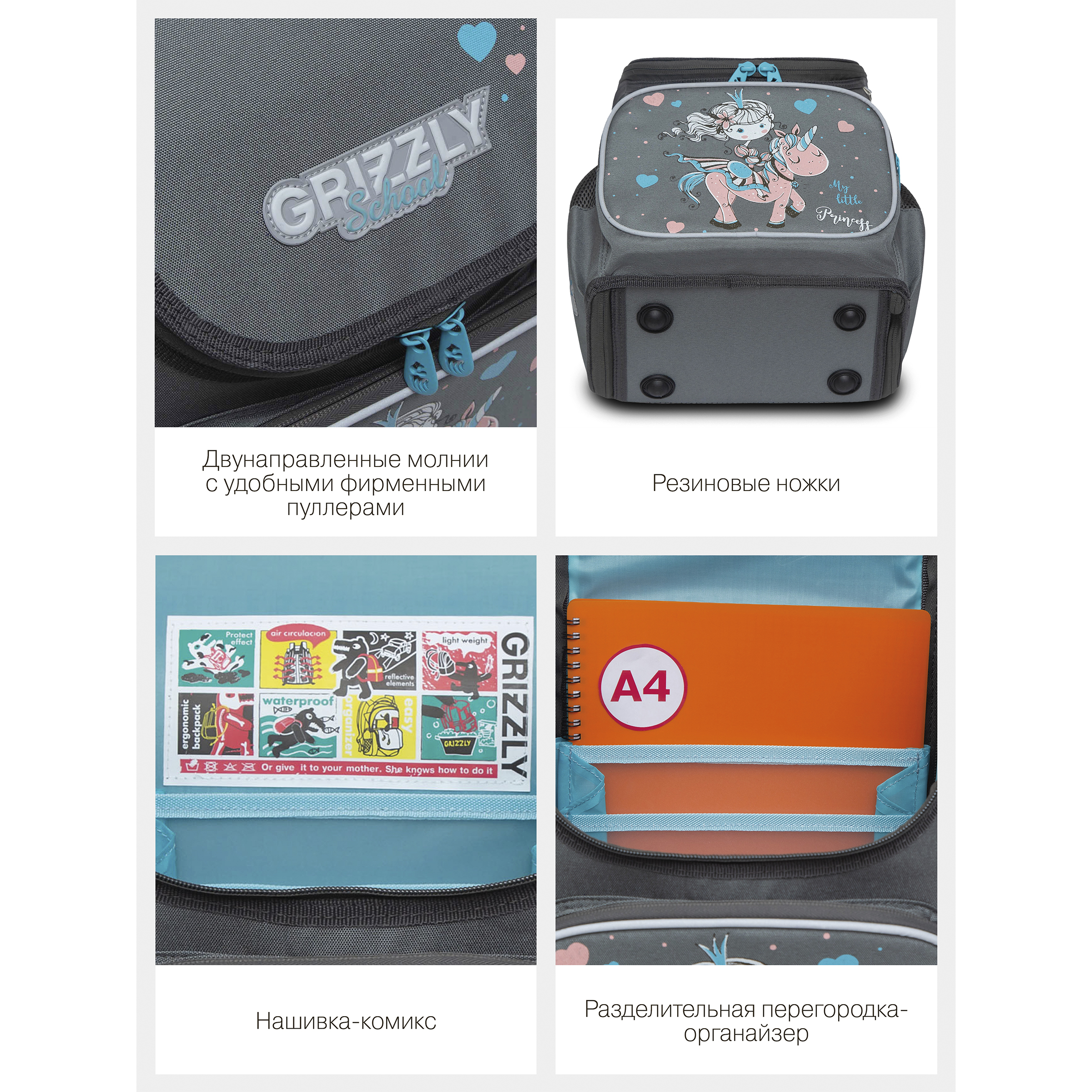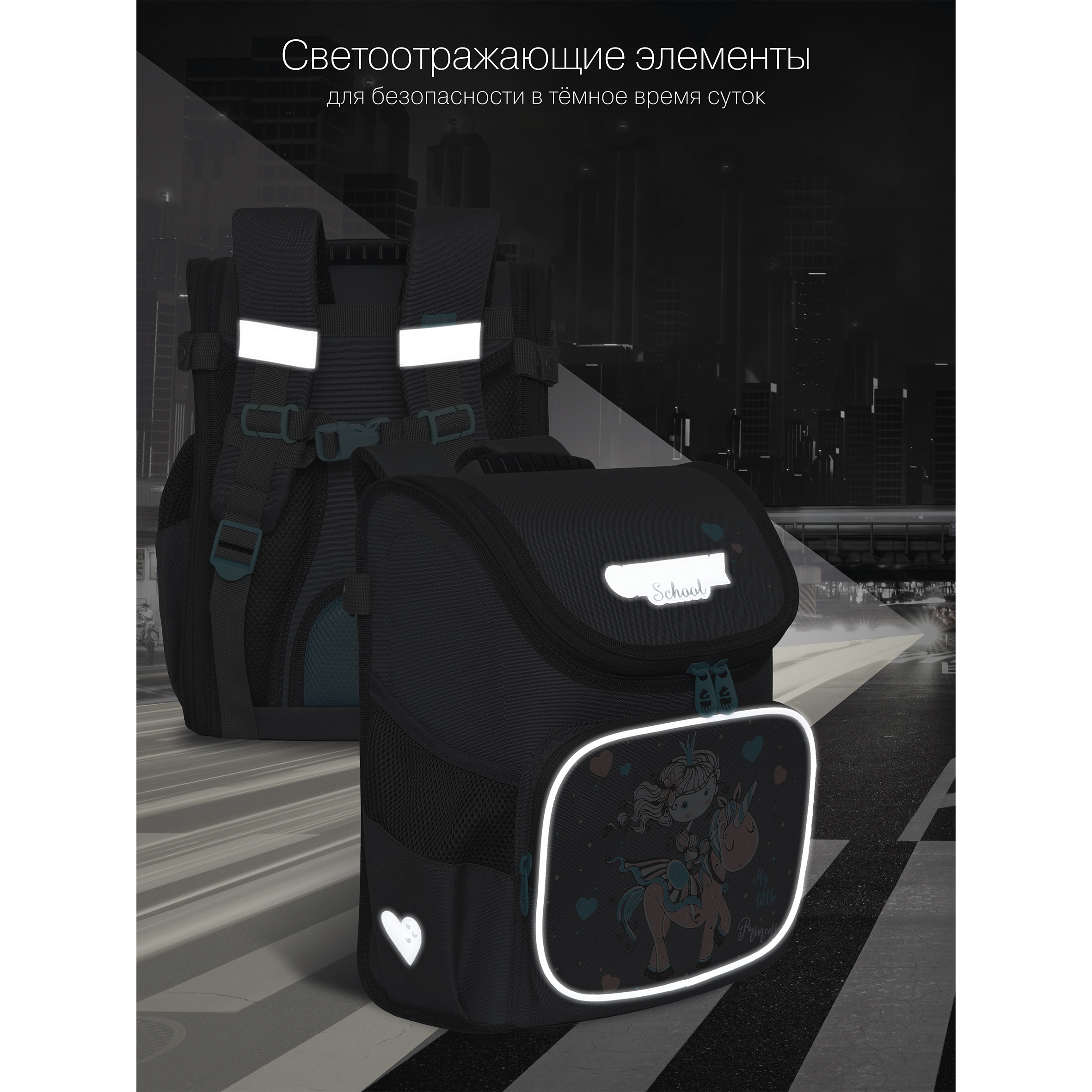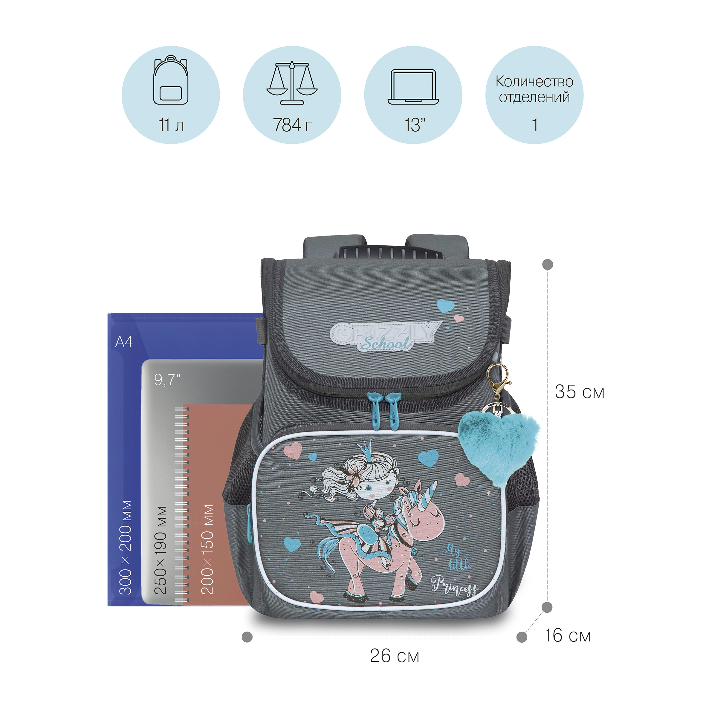У ранца одно большое отделение с разделителем для учебных пособий формата А4, передний карман на молнии для мелочей, твердое дно с резиновыми ножками и два вместительных боковых кармана. <br>
