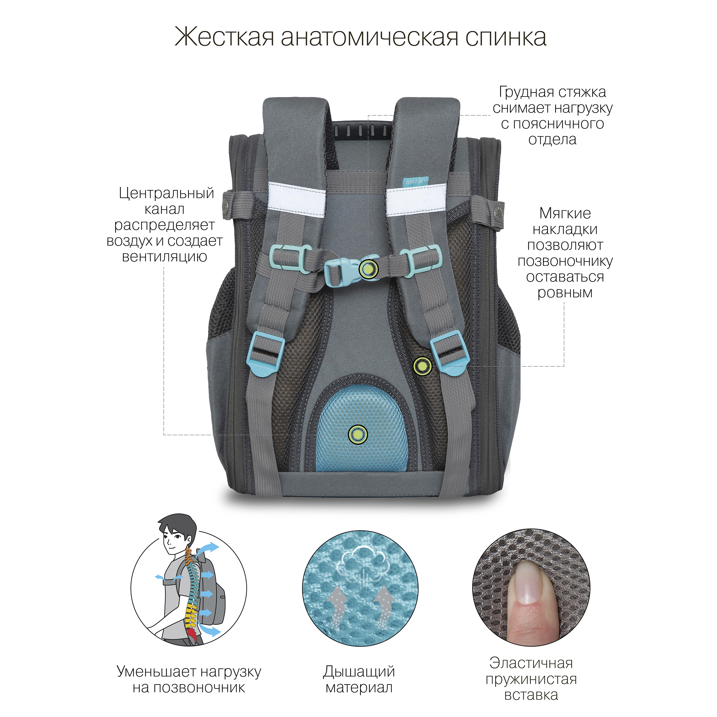 Жесткая конструкция, эргономичная спинка, лямки анатомической формы и нагрудная стяжка со свистком равномерно распределяют вес по спине ребенка. <br>