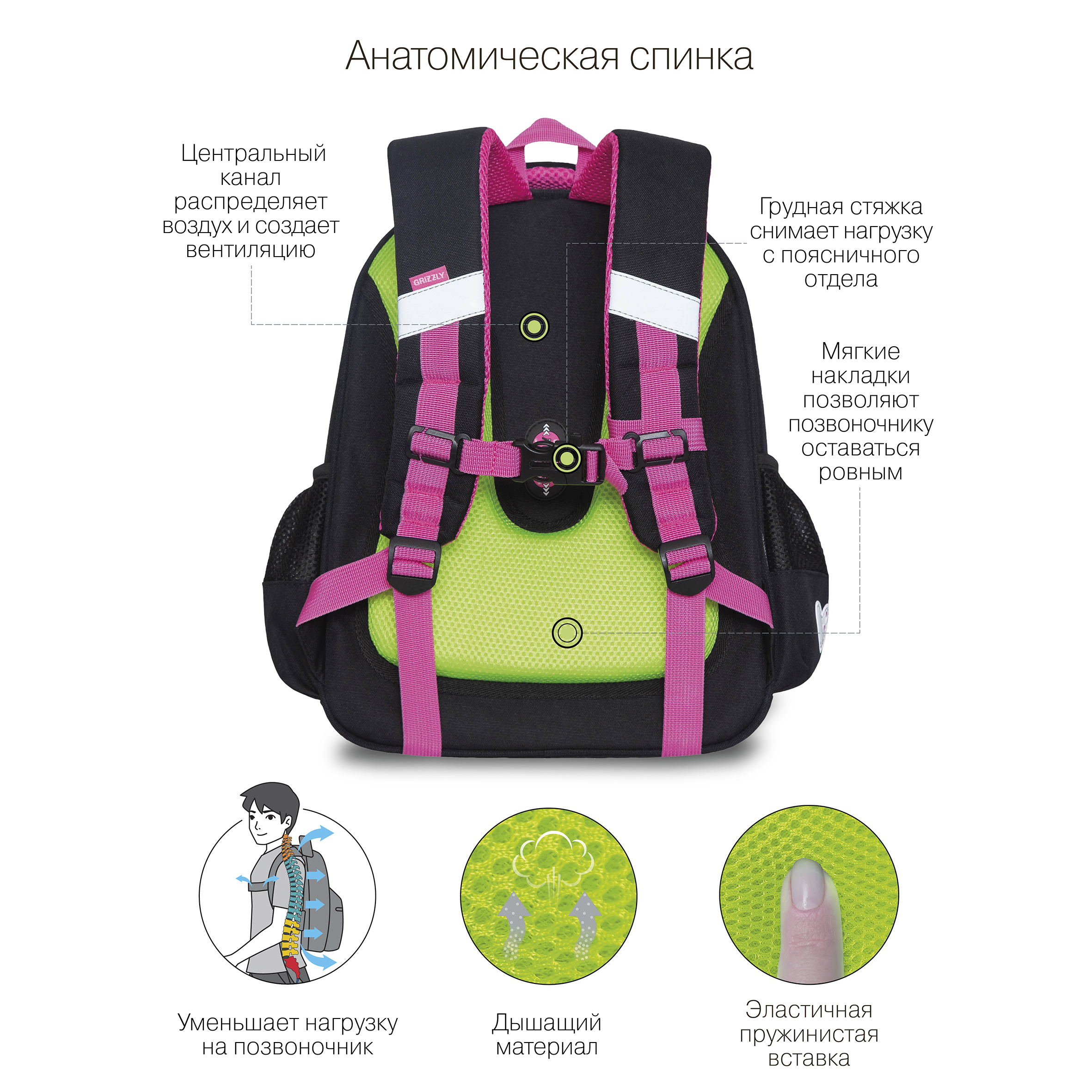 Жесткая анатомическая спинка и лямки анатомической формы позволяют равномерно распределять нагрузку на спину и плечи. <br>