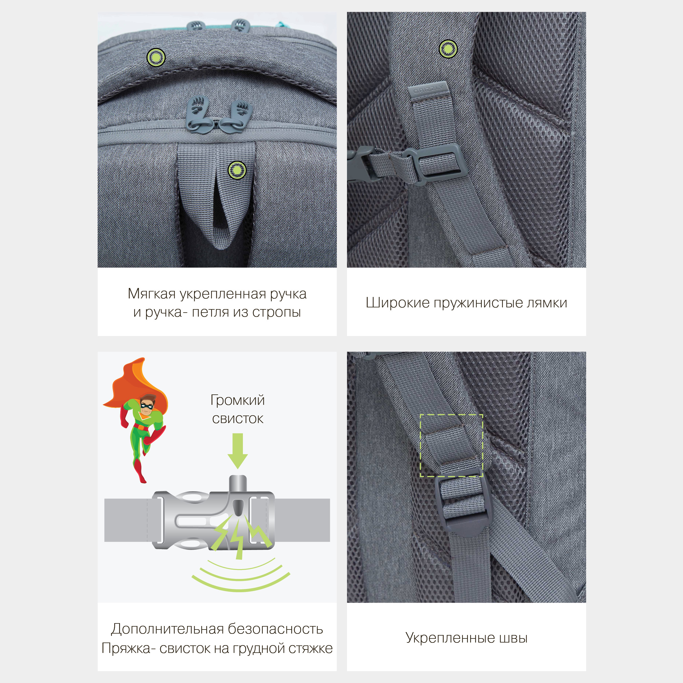 Комфорт во время ходьбы обеспечивает нагрудная стяжка со свистком. <br>