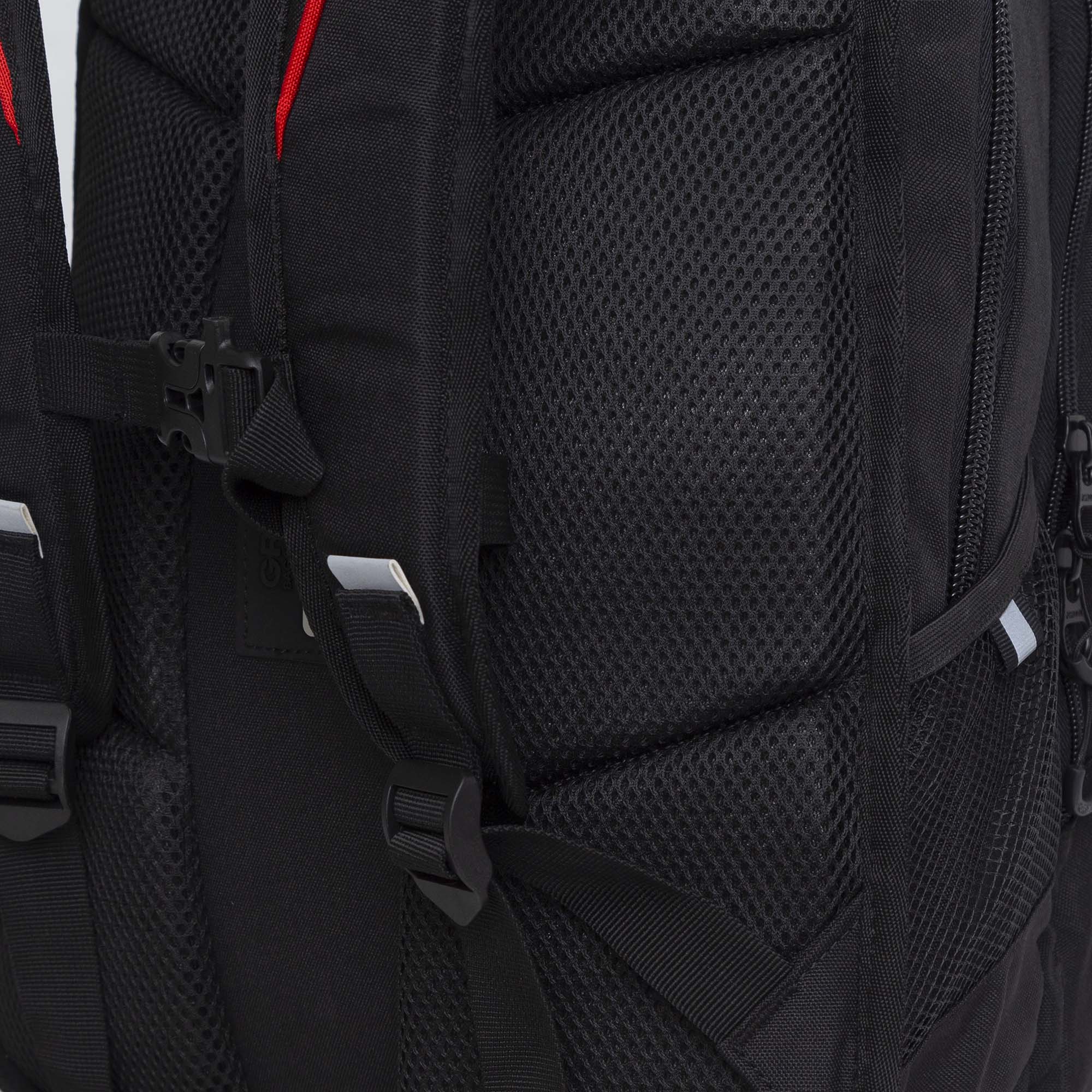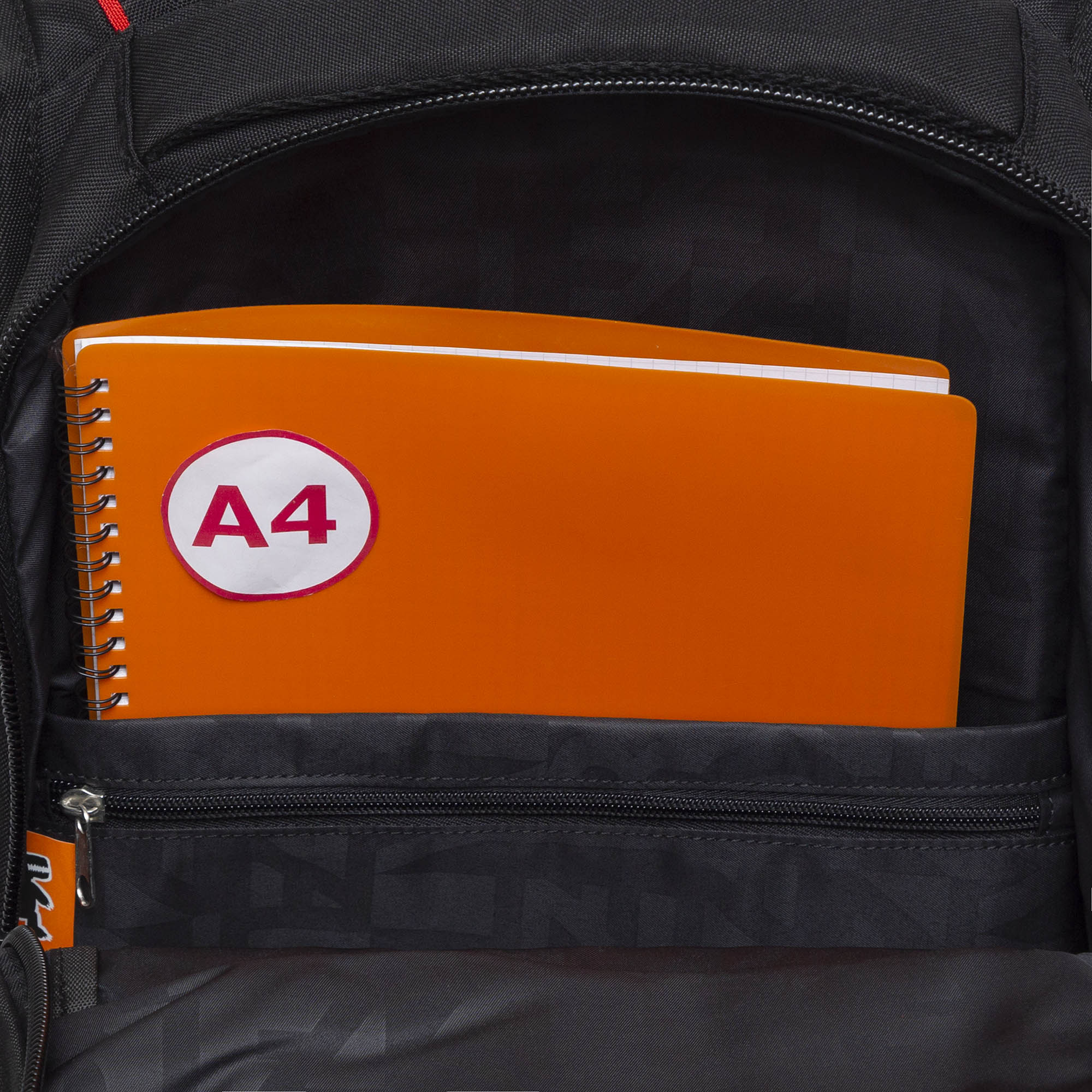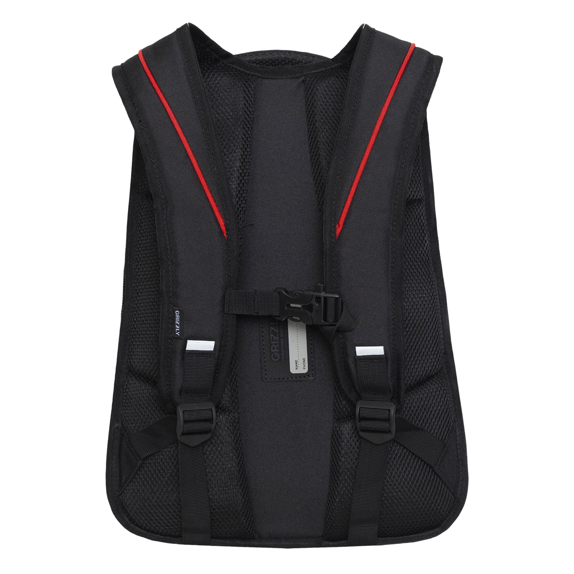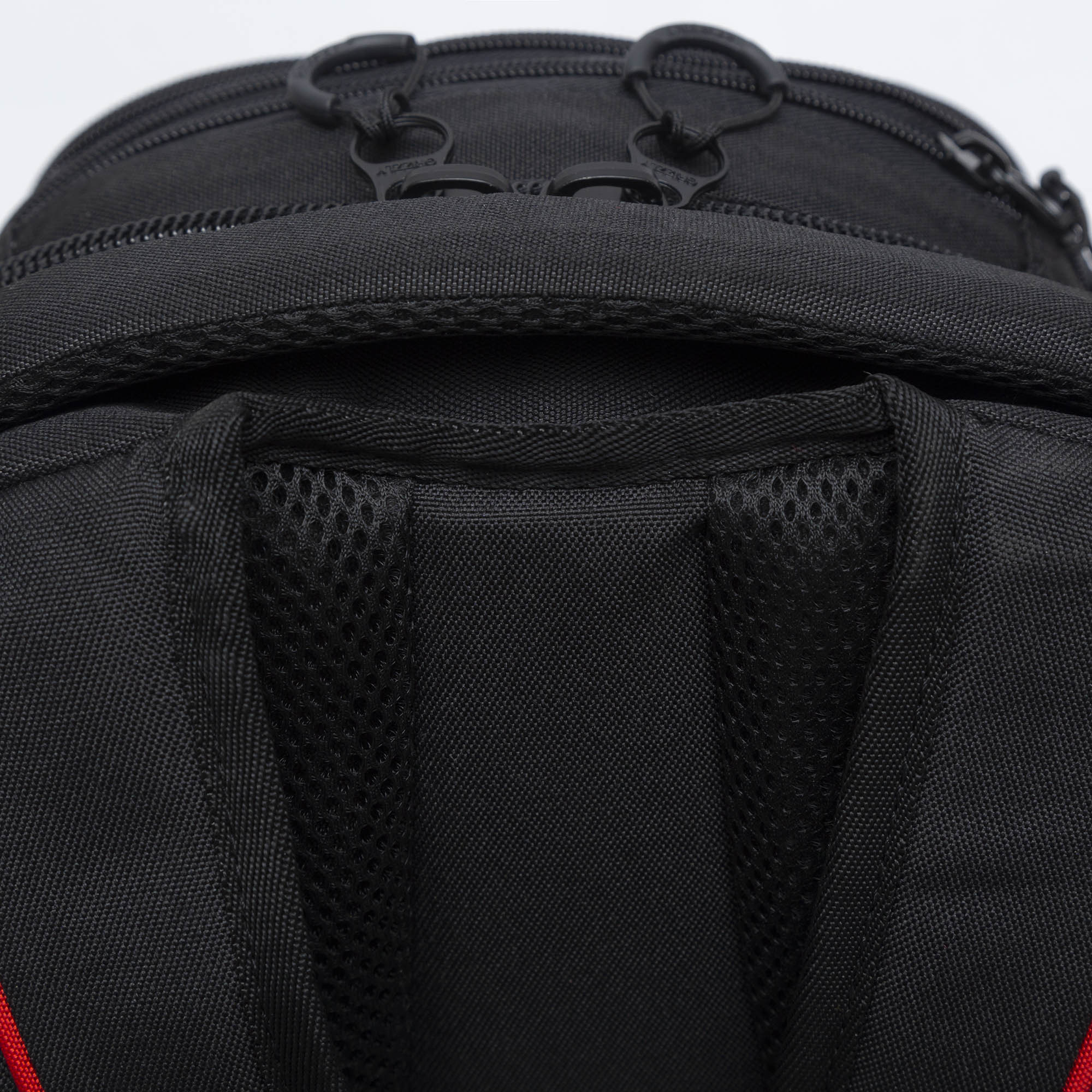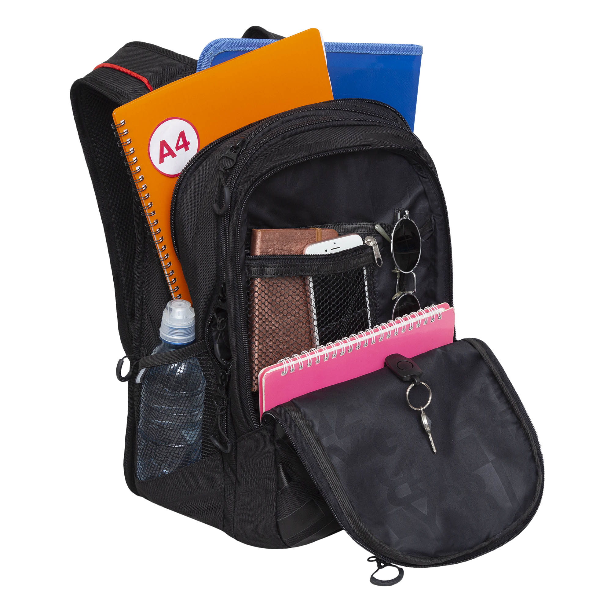 Чтобы при полной загрузке школьного рюкзака меньше уставала спина, сделали жесткую анатомическую спинку с накладками и нагрудную стяжку со свистком. Ребенок сохраняет правильную осанку.