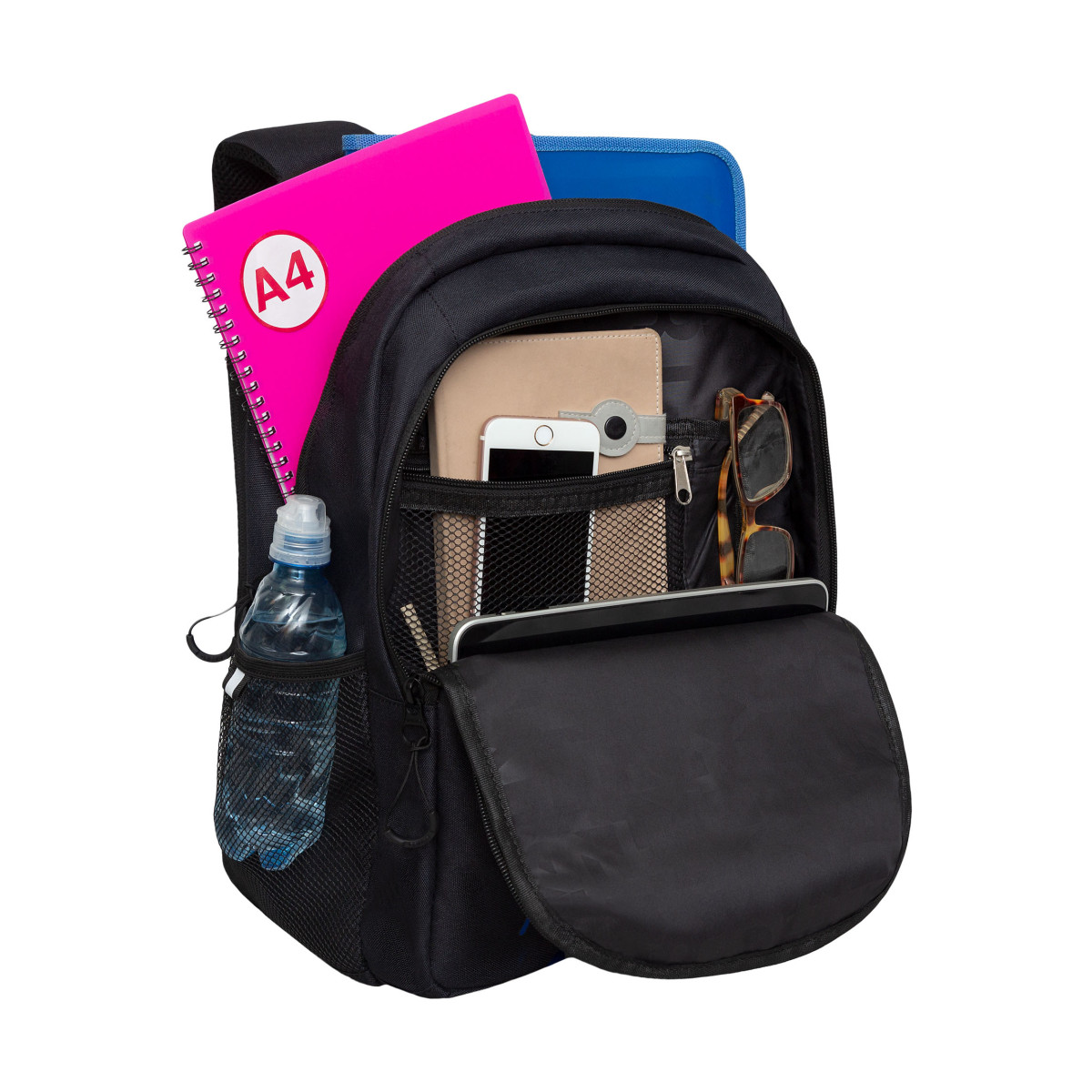 Анатомическая спинка, нагрудная стяжка и удобные лямки позволяют равномерно распределять нагрузку на спину и плечи.