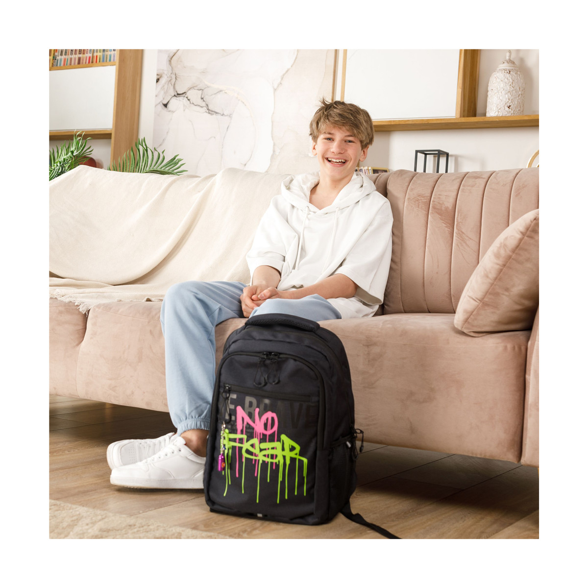 У рюкзака удобная ручка для переноски, дополнительная ручка-петля и укрепленное дно.