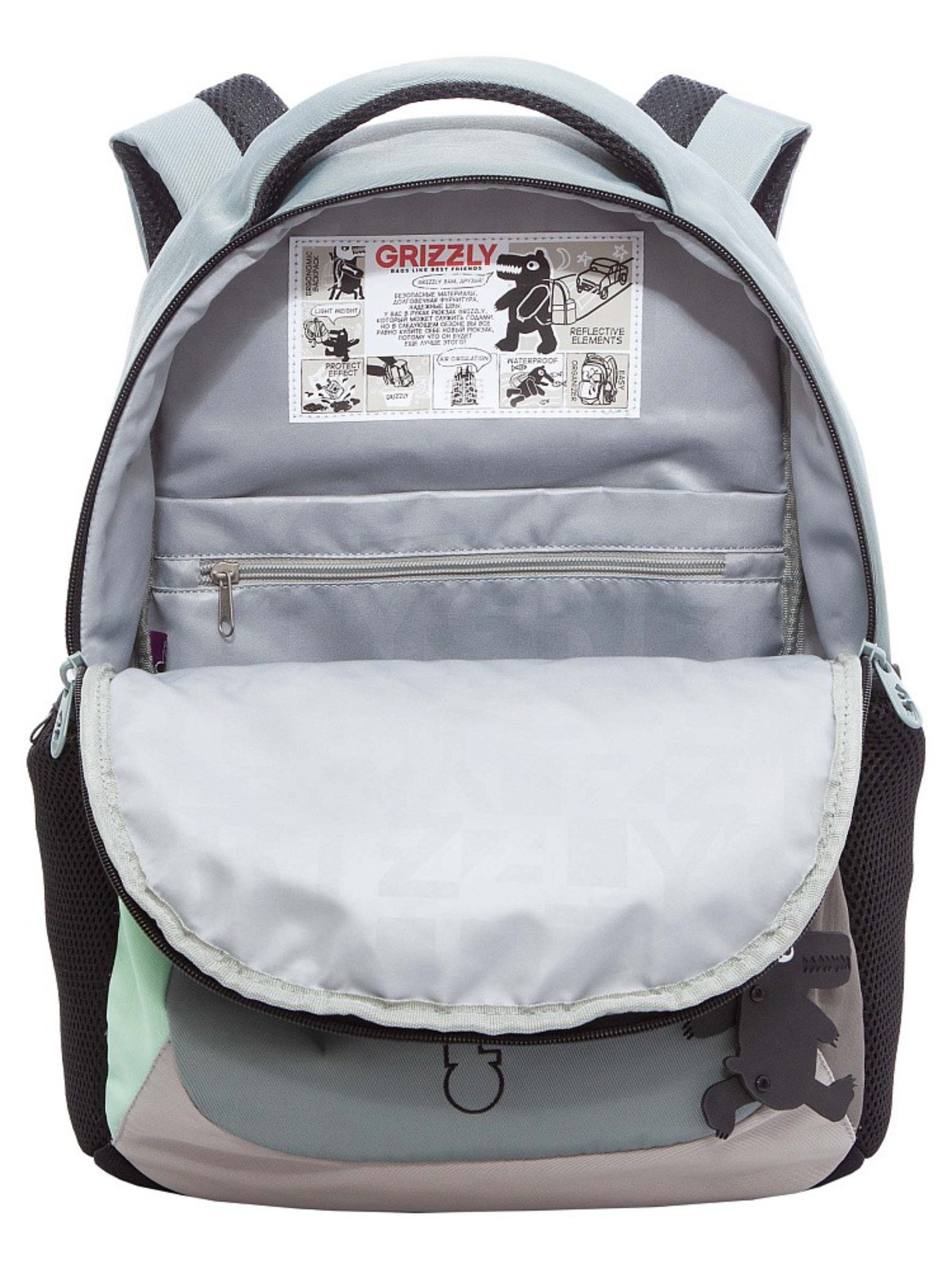 Петля для подвешивания удобна для хранения рюкзака в шкафчике или на крючке.