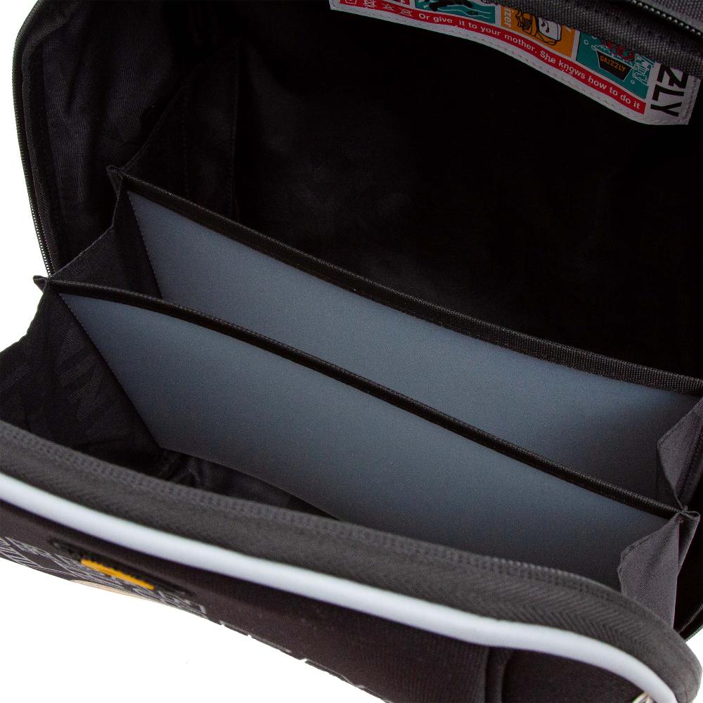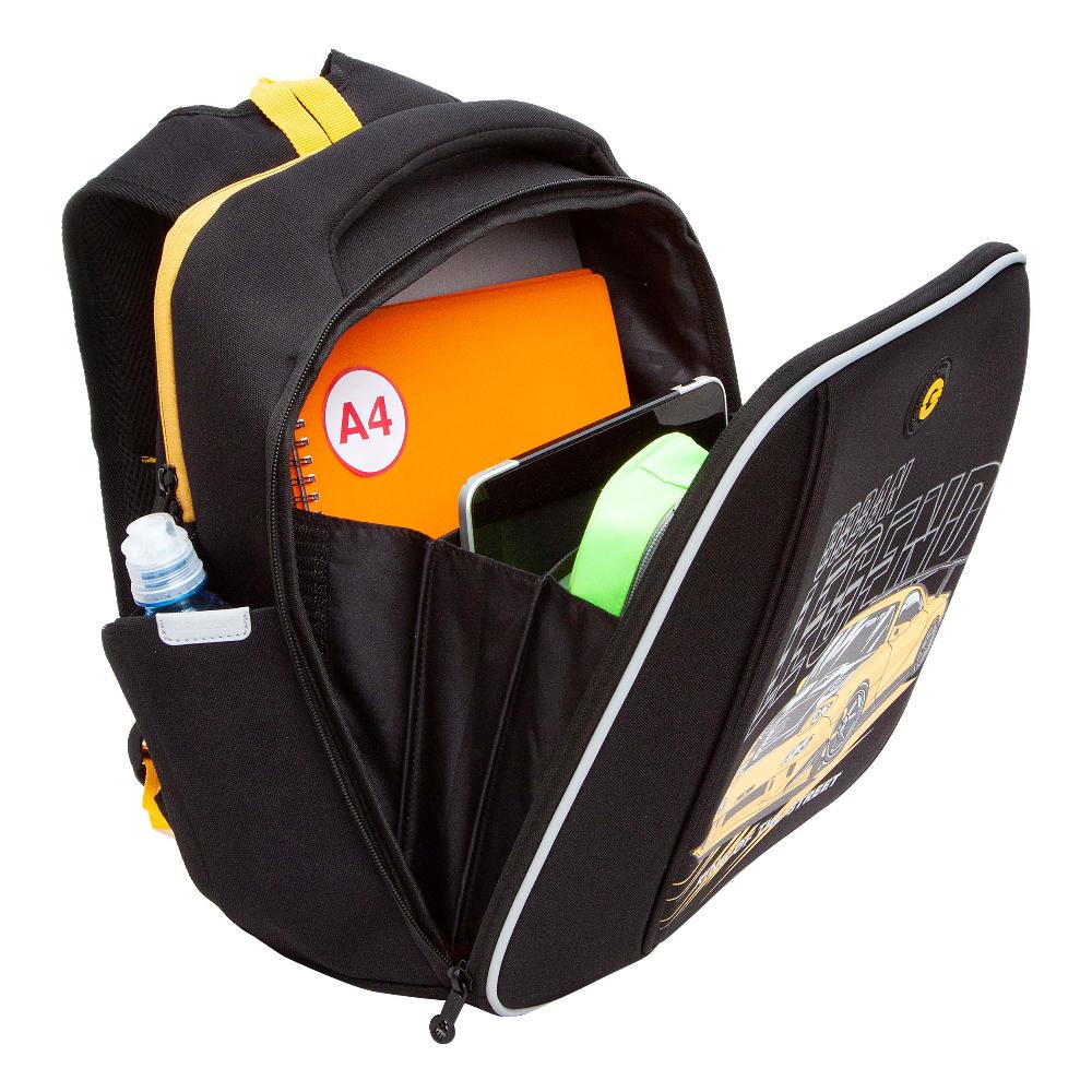 У ранца два отделения. Основное отделение разбито на три отсека: для книг, тетрадей и папок А4, есть карман из сетки на молнии.