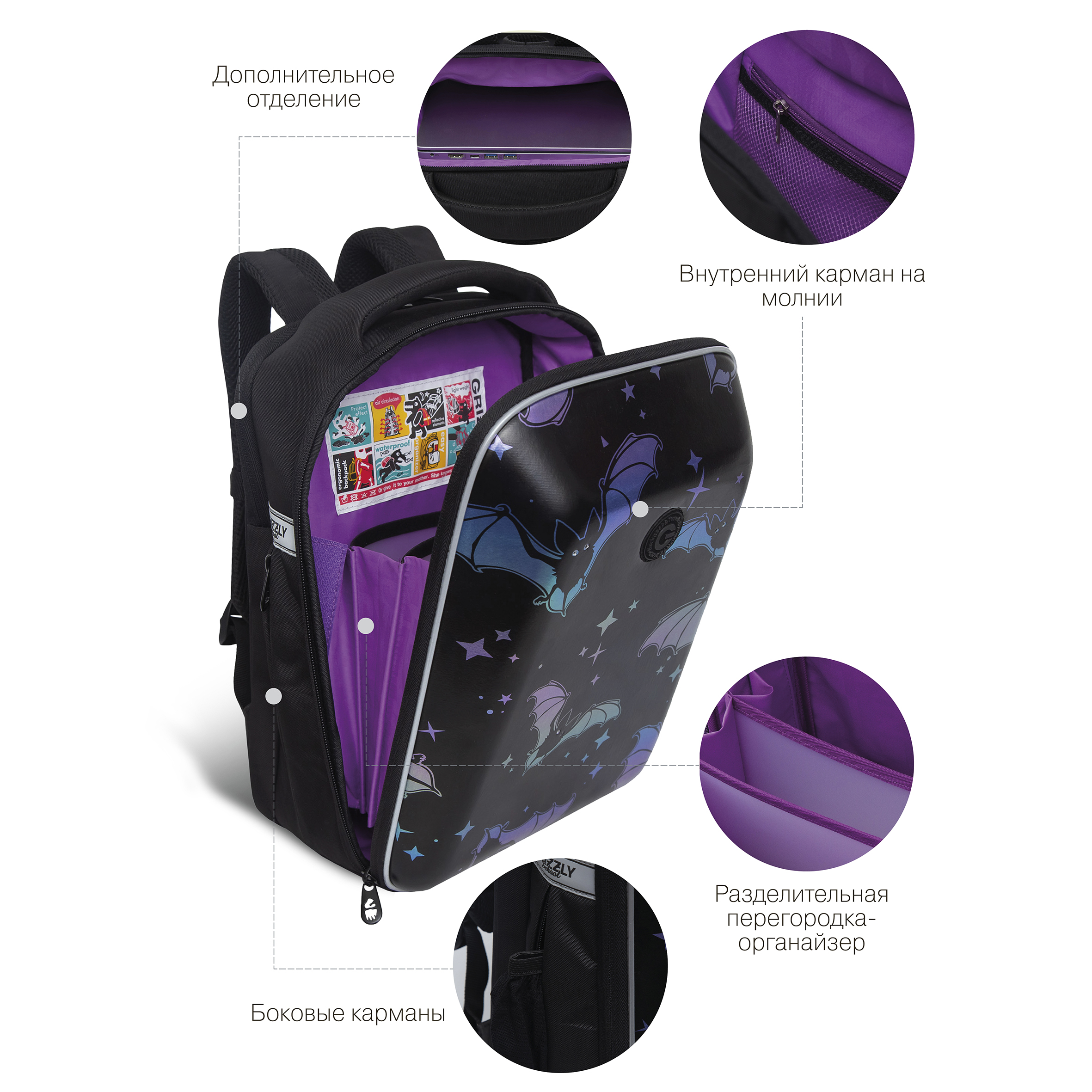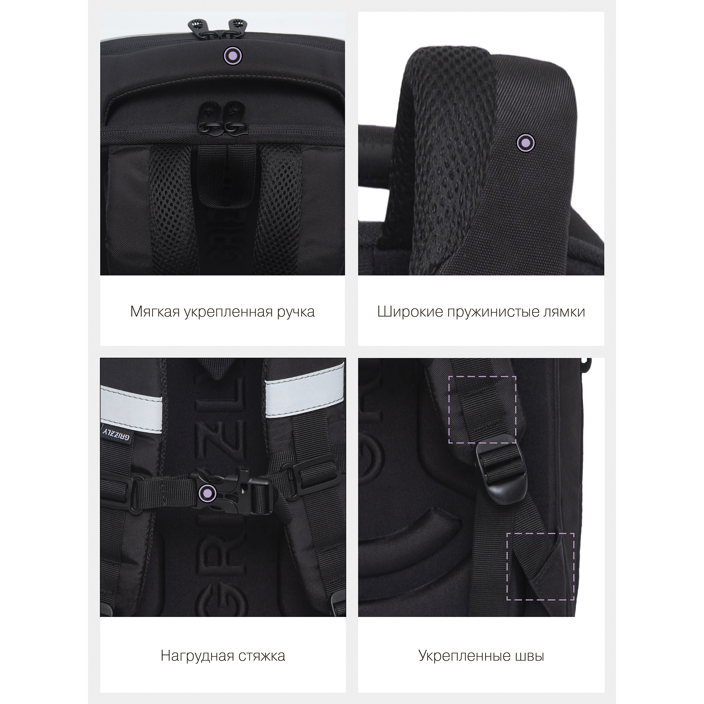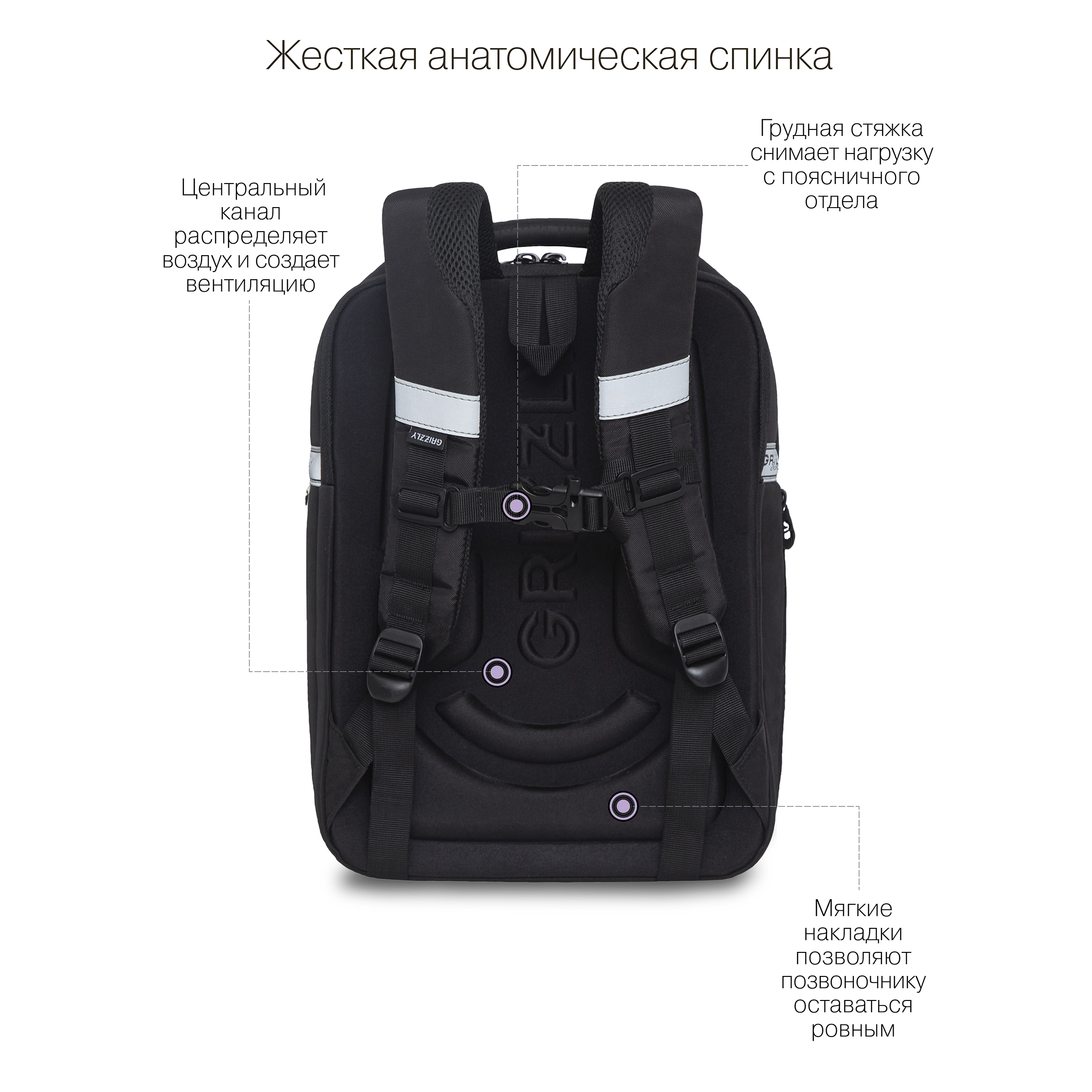 У ранца формованная лицевая часть, новая жесткая анатомическая спинка и жесткое дно на ножках.