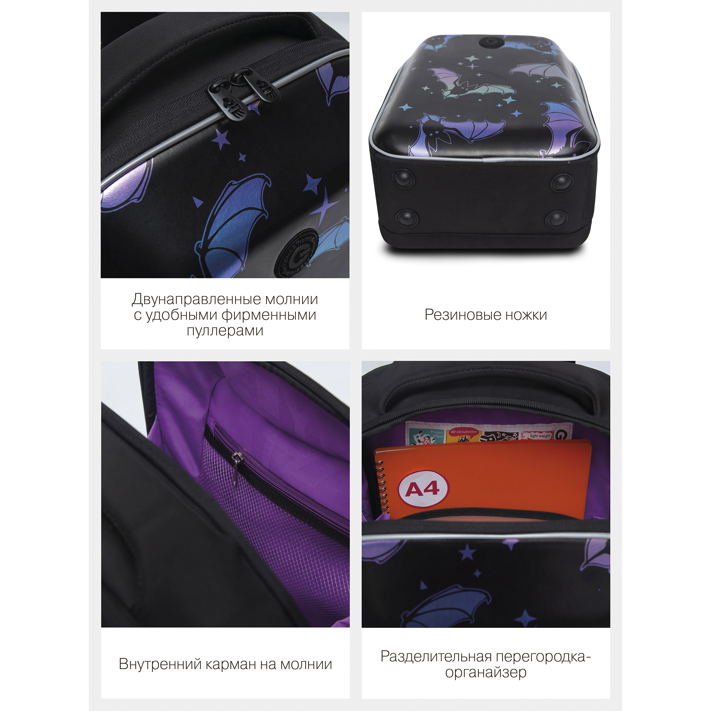 Оно разбито на три отсека: для книг, тетрадей и папок А4, есть карман на молнии.