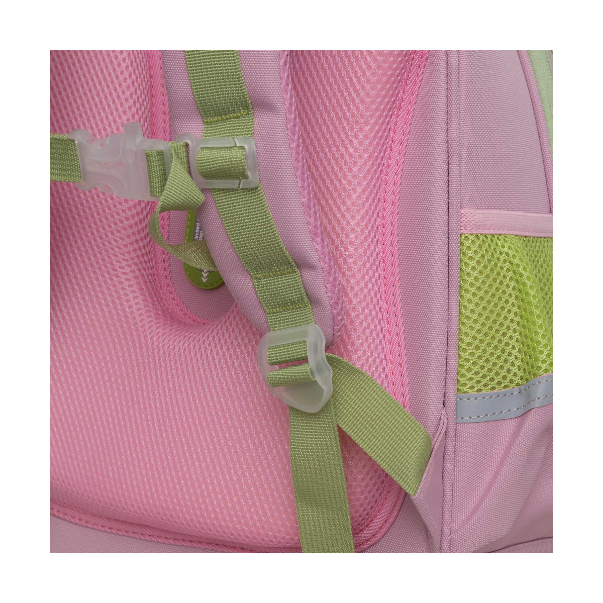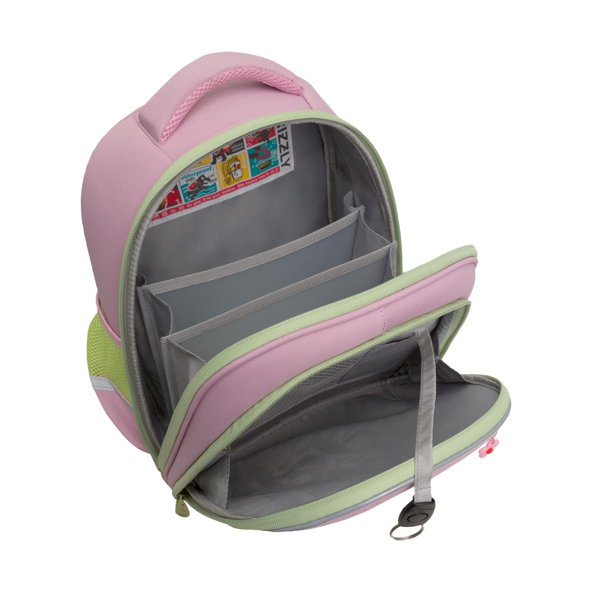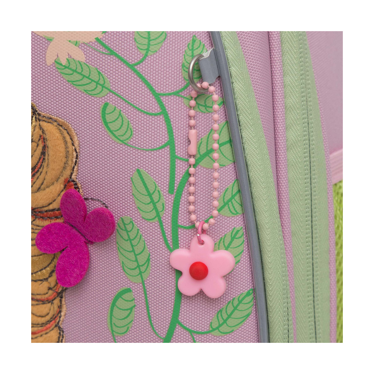 У ранца два отделения, укрепленное дно на резиновых ножках, удобная ручка, дополнительная ручка-петля для и два вместительных боковых кармана для бутылочек с водой.
