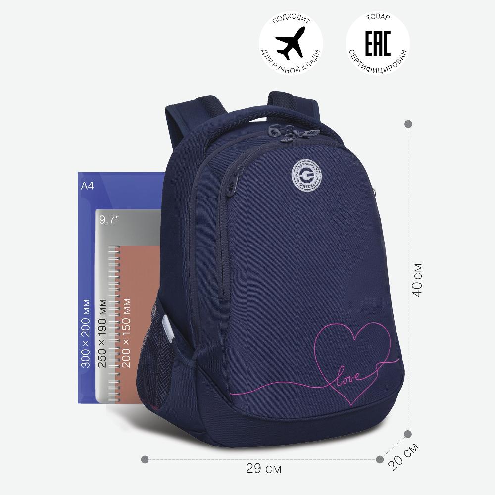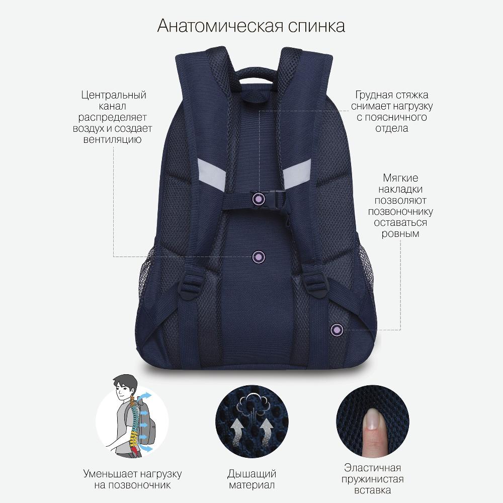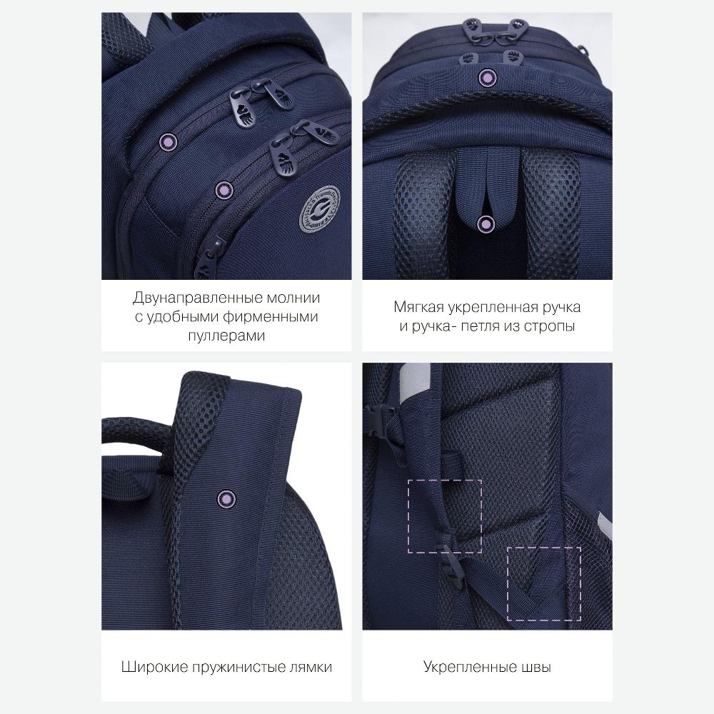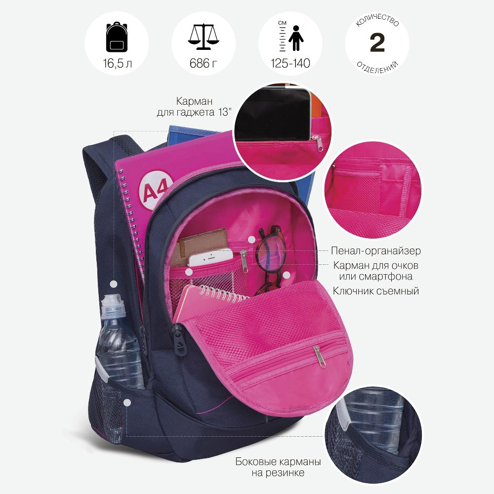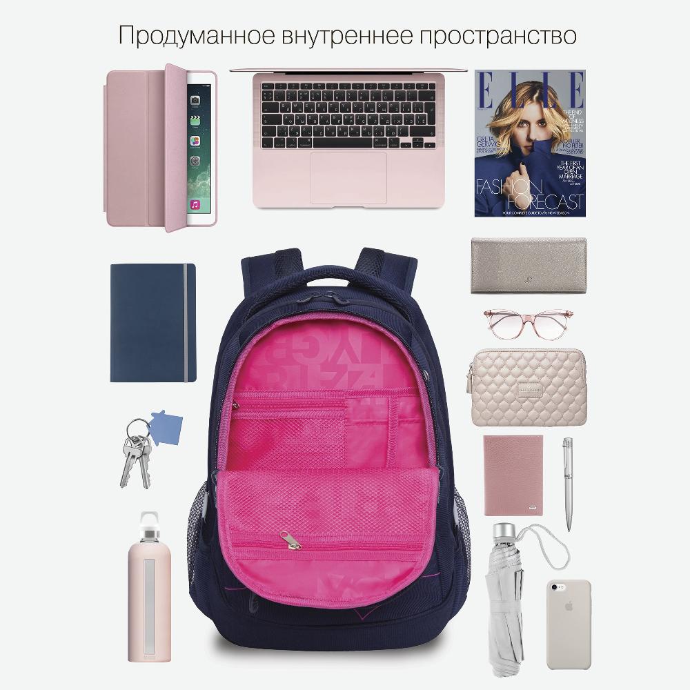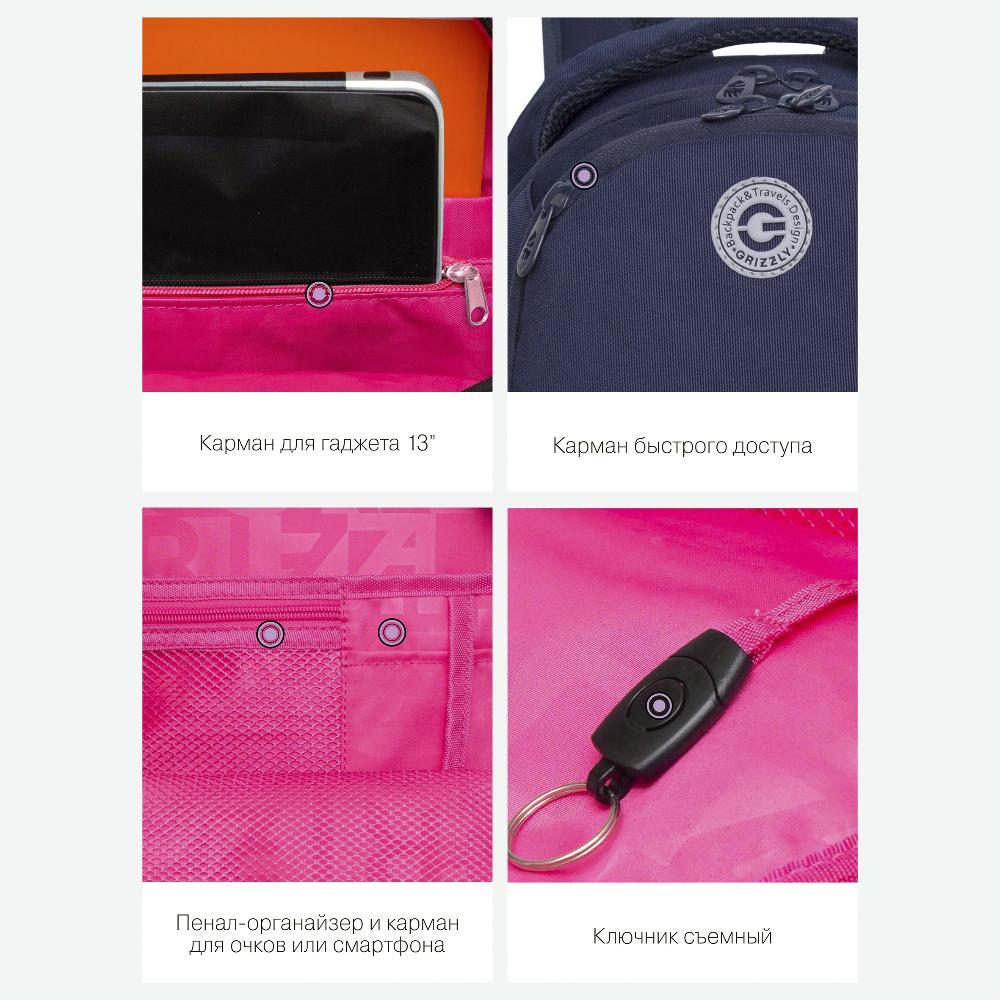 Много внутренних и внешних карманов, пенал, брелок для ключей, карман для ноутбука 13”, карман быстрого доступа для документов и кошелька.