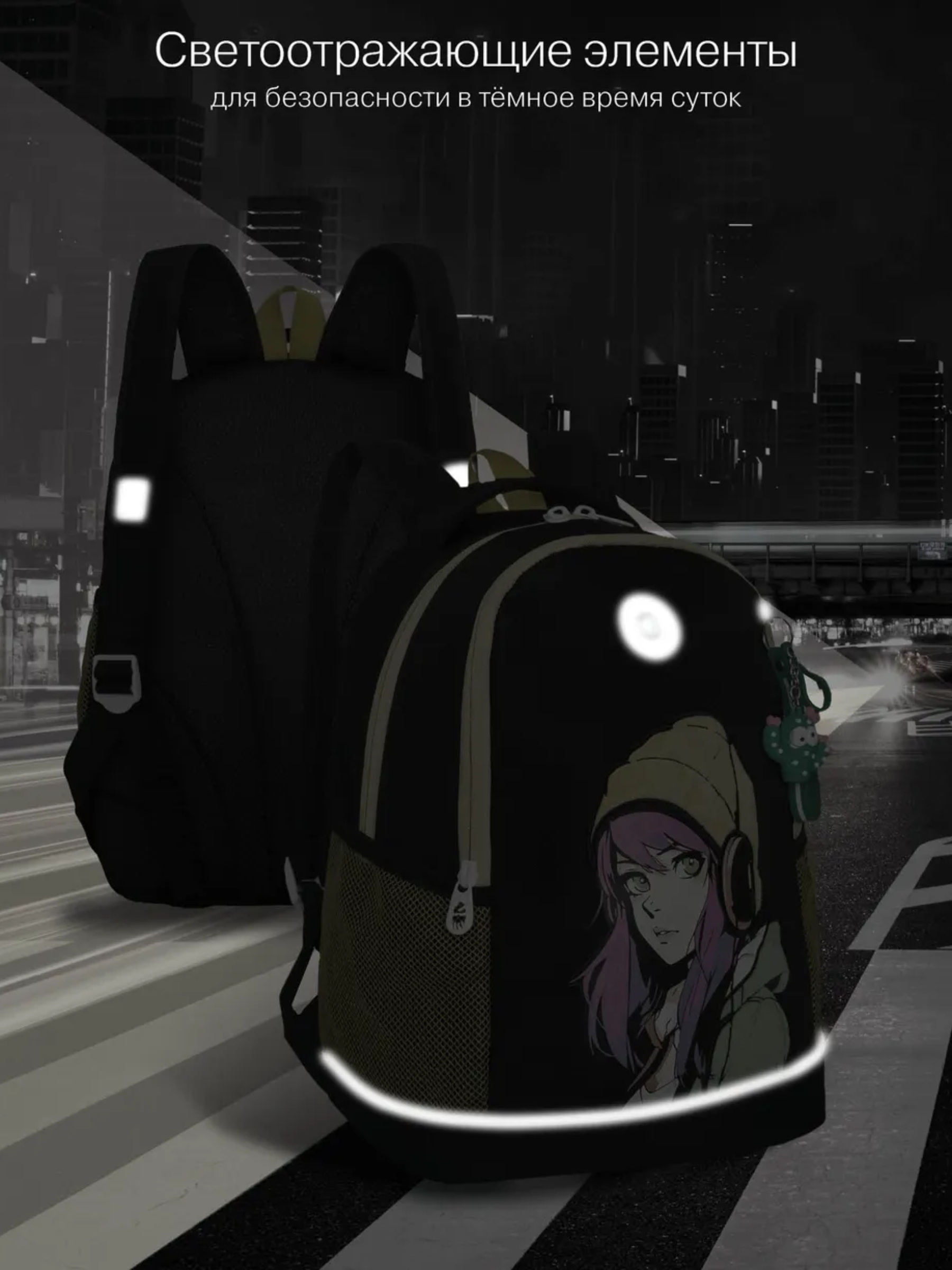 Светоотражающие элементы с четырех сторон увеличивают безопасность в темное время суток.