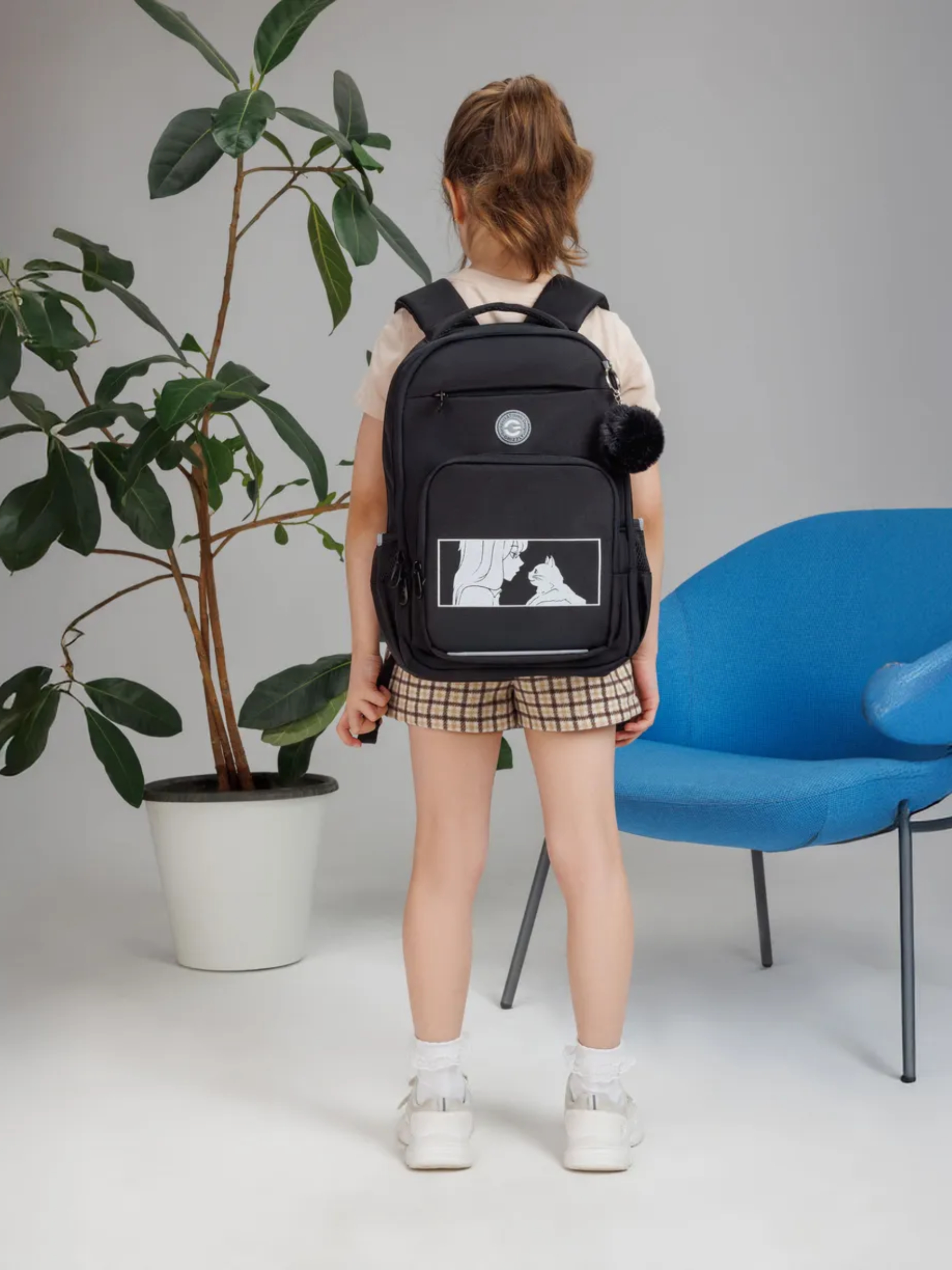 Жесткая анатомическая спинка и укрепленные лямки обеспечивают комфорт при ношении.