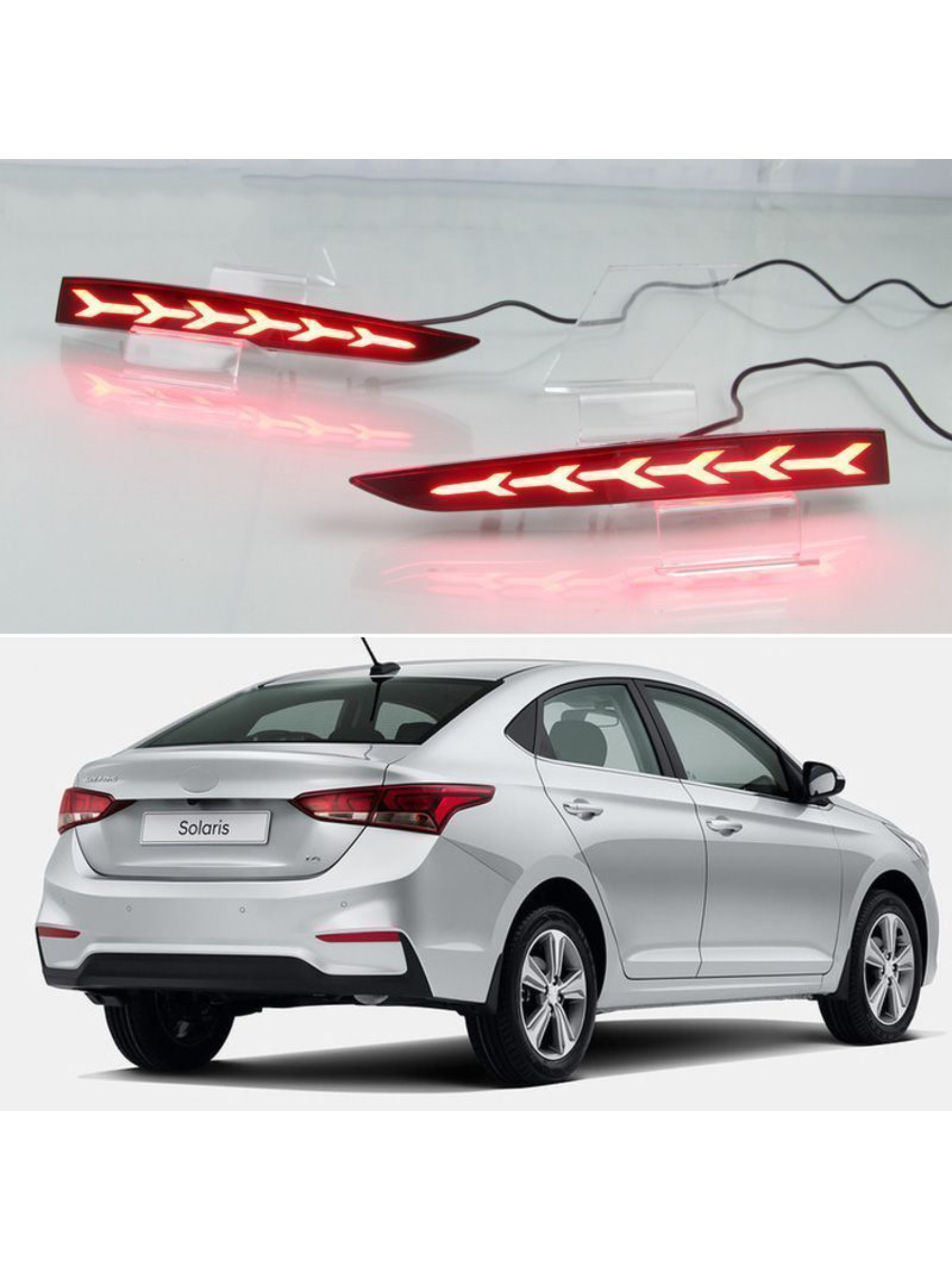 Светодиодные вставки в задний бампер Хендай Солярис 2017-2019.