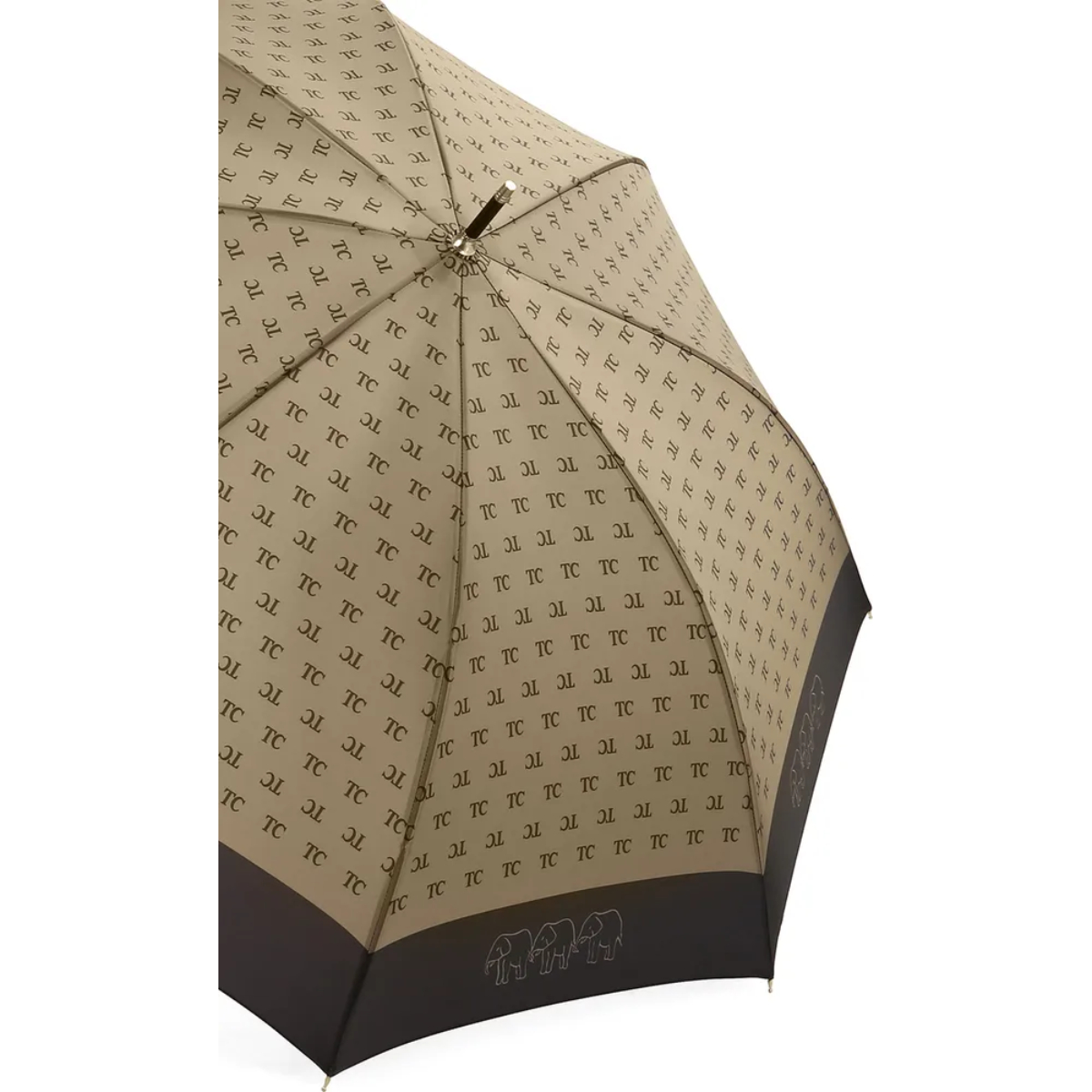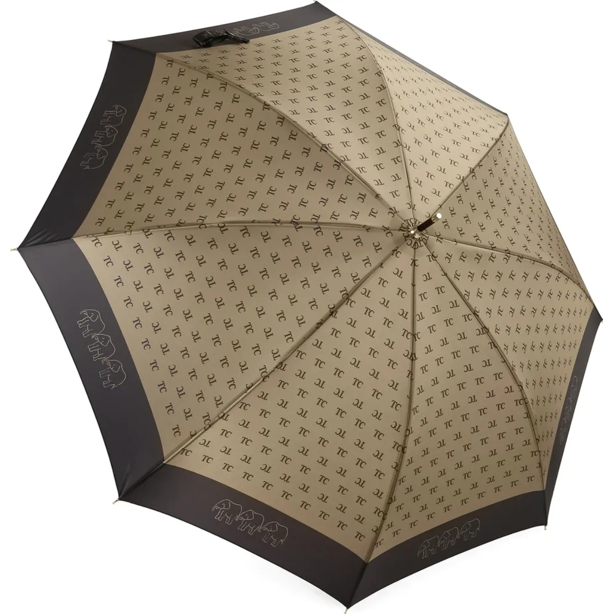 Зонтик Три Слона имеет удобную ручку крюк. Она выполнена из кожи.