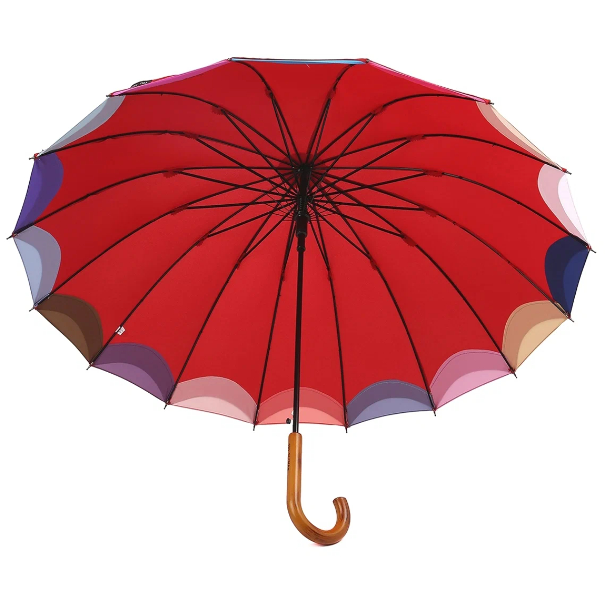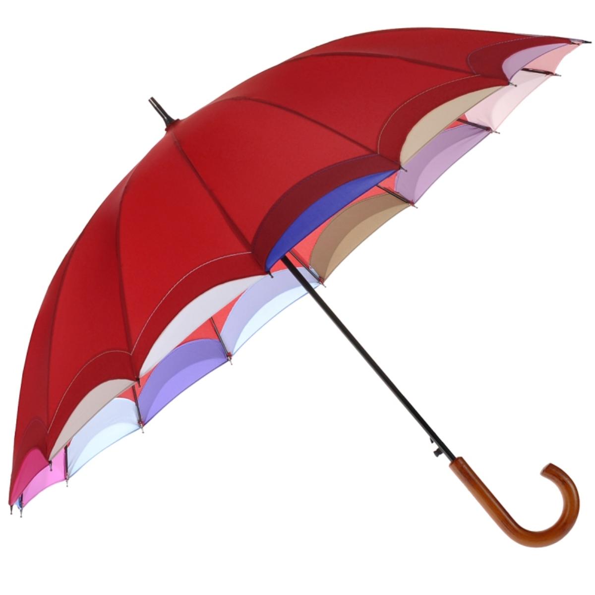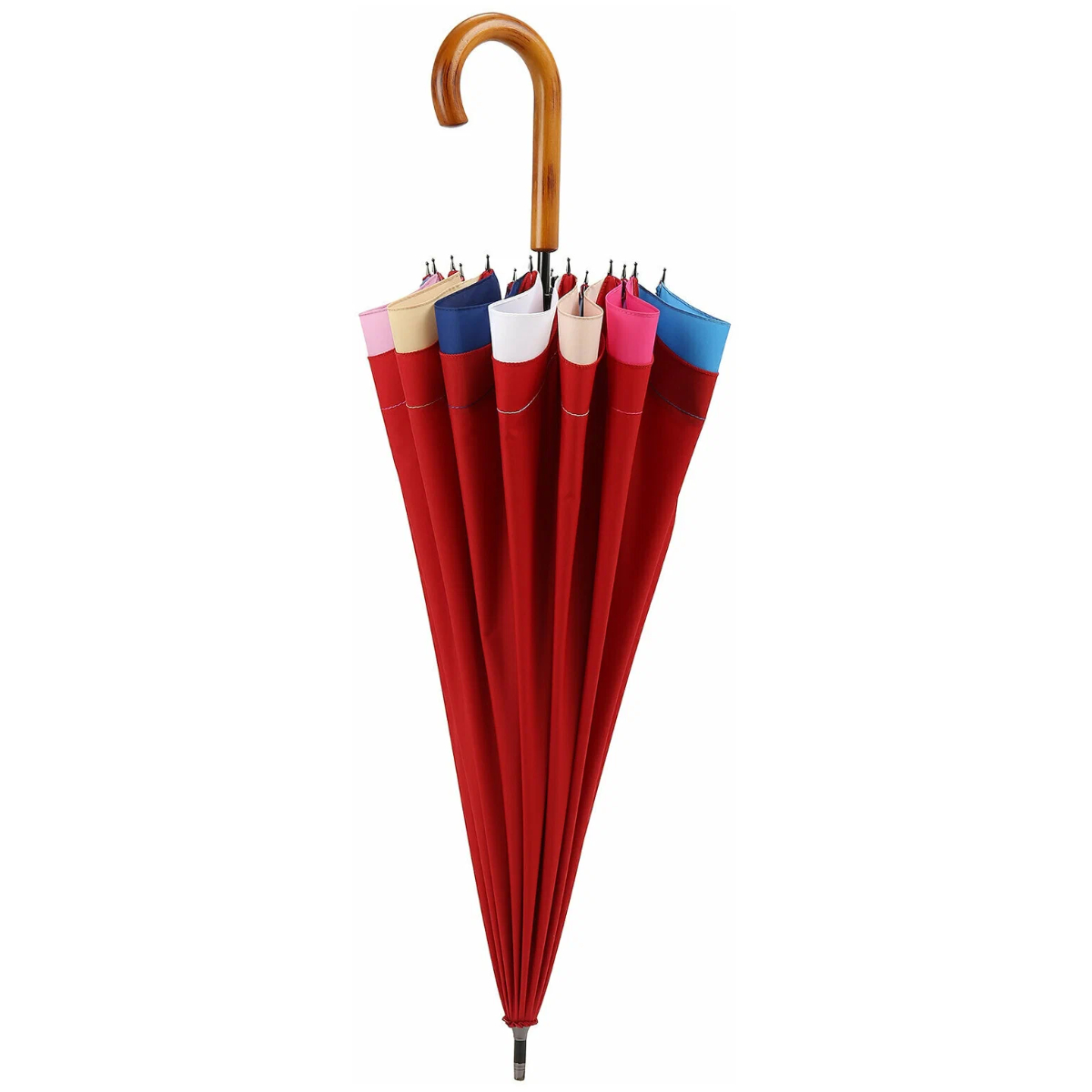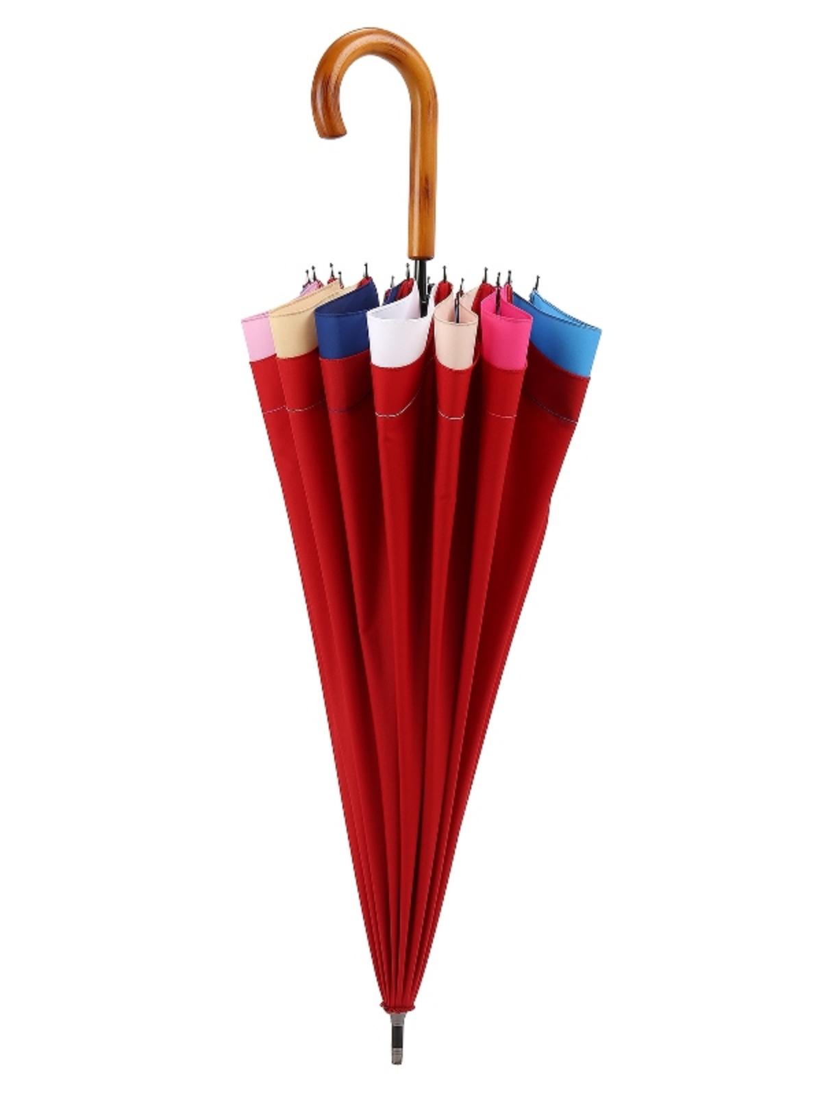 Материал каркаса - сталь. Количество спиц - 16. Материал купола - эпонж. Материал ручки - дерево. Форма ручки - крюк. Расцветка - однотонные. Радиус купола - 60 см. Диаметр купола - 120 см.