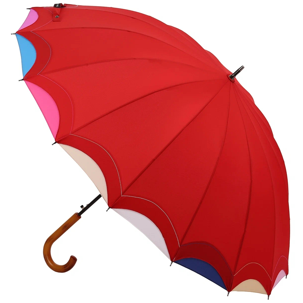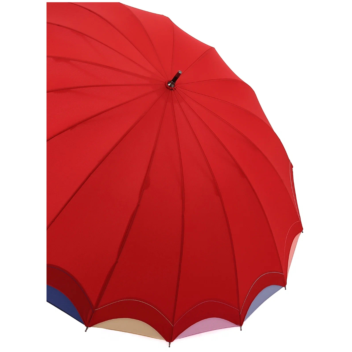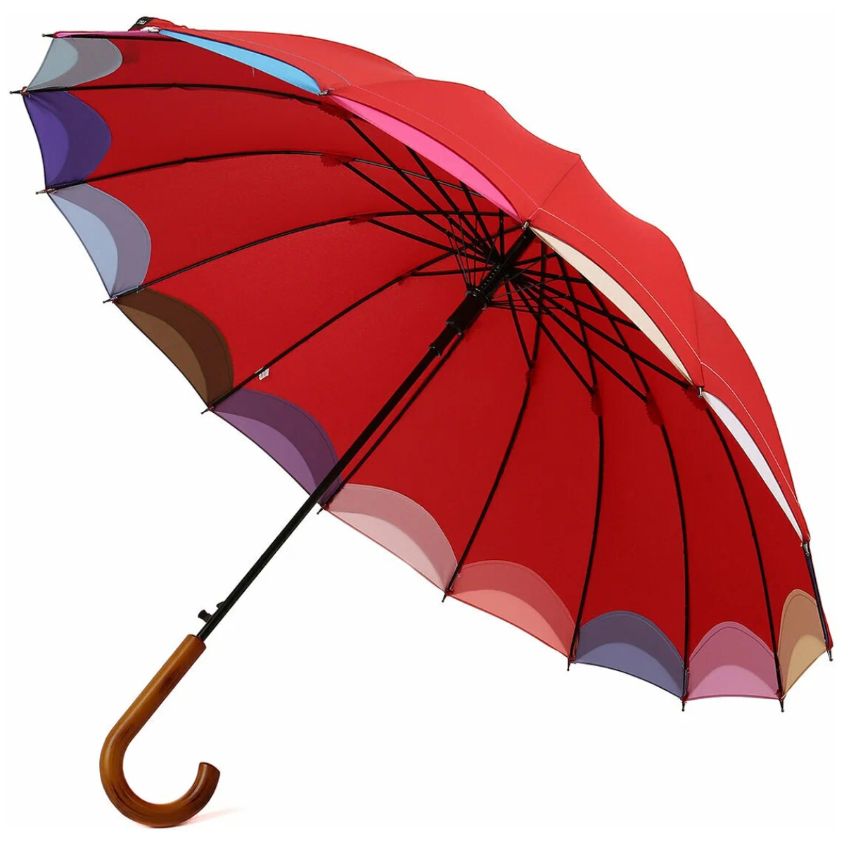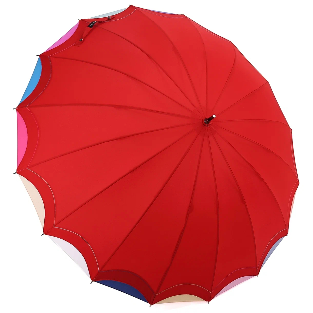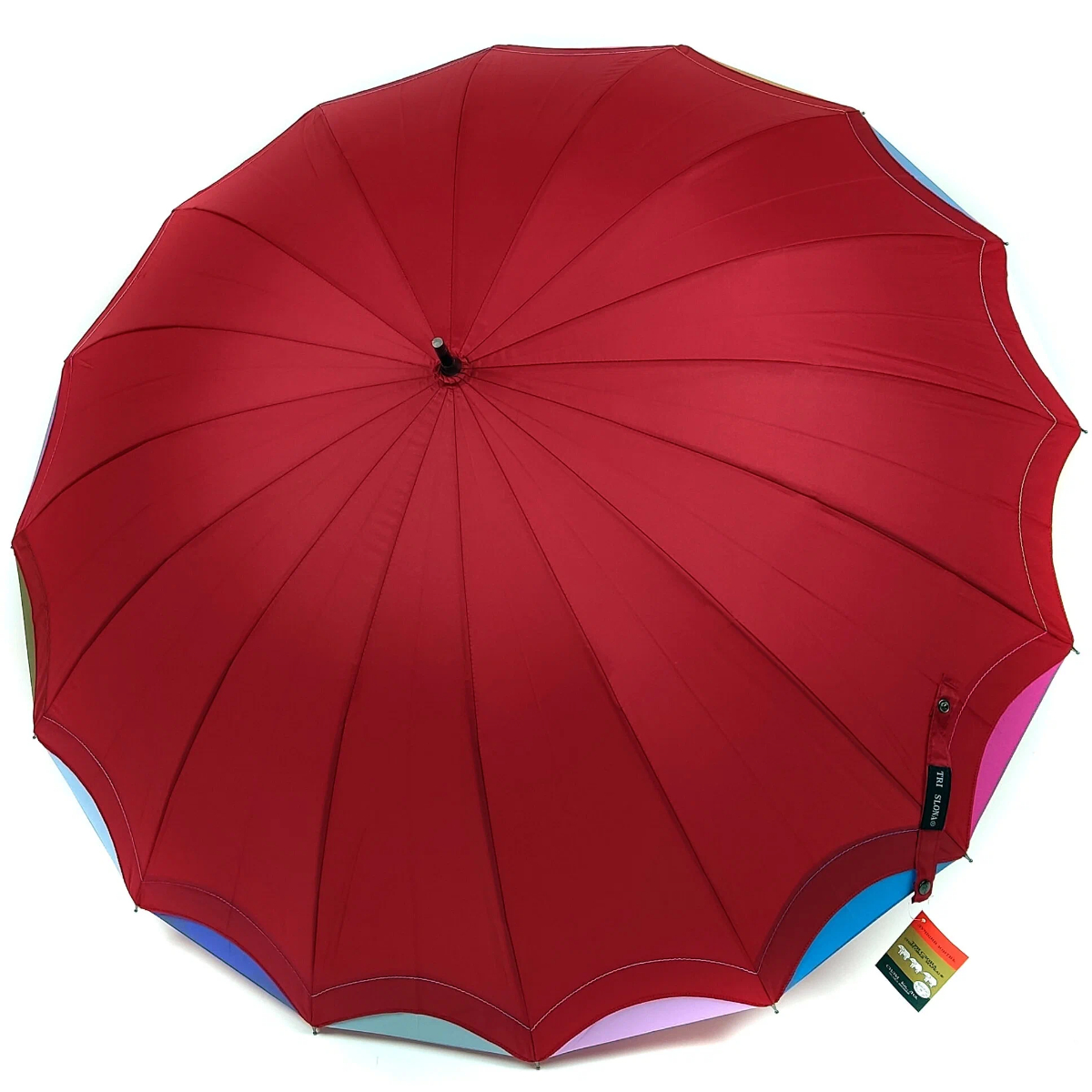 Материал каркаса - сталь. Количество спиц - 16. Материал купола - эпонж. Материал ручки - дерево. Форма ручки - крюк. Расцветка - однотонные. Радиус купола - 60 см. Диаметр купола - 120 см.