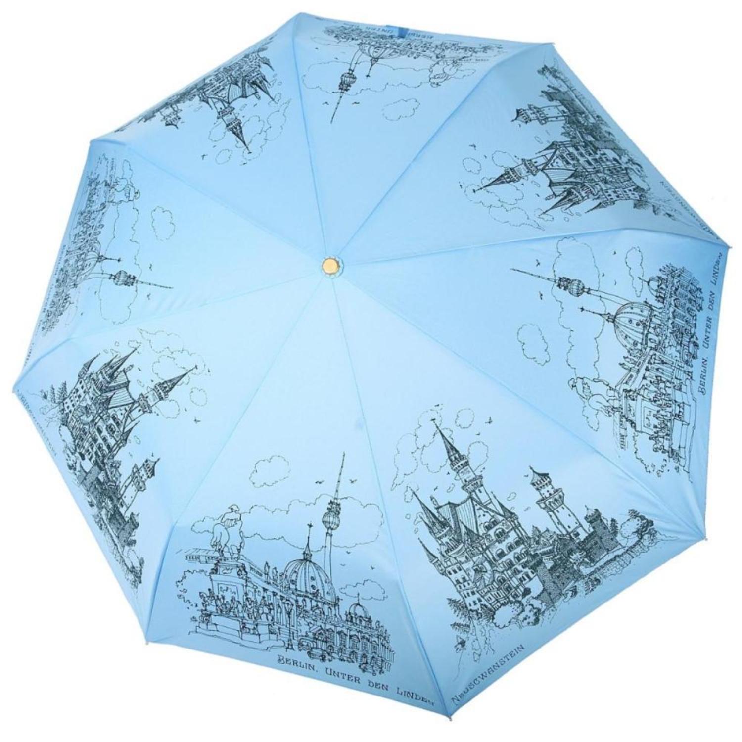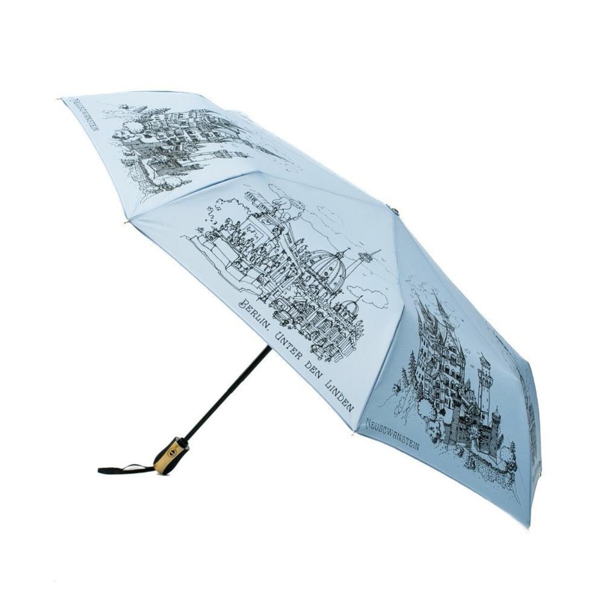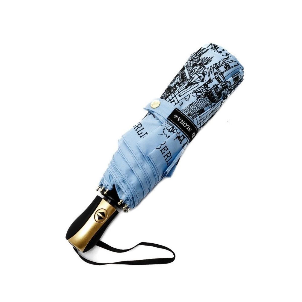 Тип зонта - Складные. Расцветка - голубой. Материал каркаса - сталь, фибергласс. Вес: 420 г.